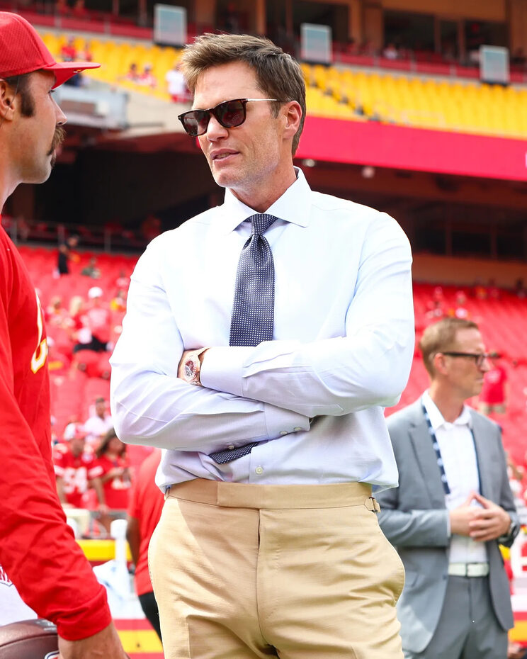 전 미식축구 선수이자 NFL 해설위원으로 활동 중인 톰 브래디는 페더러의 행보를 따라 캔자스시티에서 열린 이글스-치프스 경기에서 보석 세팅된 파텍 필립 노틸러스를 착용했다. 40.5mm, 18K 로즈 골드 케이스로, 노틸러스 특유의 해치 형태와 통합 브레이슬릿을 갖췄다. 여기에 893개의 라운드 컷 다이아몬드와 182개의 바게트 컷 다이아몬드가 세팅되어 있으며, 총 20캐럿에 달한다. 또한 독특한 크로노그래프 구조가 있는데, 두 개의 푸셔가 6시 방향 서브 다이얼을 제어하며 12시간 및 60분 스케일을 표시한다. 3시 방향에는 날짜창도 있다. 무브먼트는 파텍의 인하우스 cal. CH 28-520 C 자동 무브먼트다.
