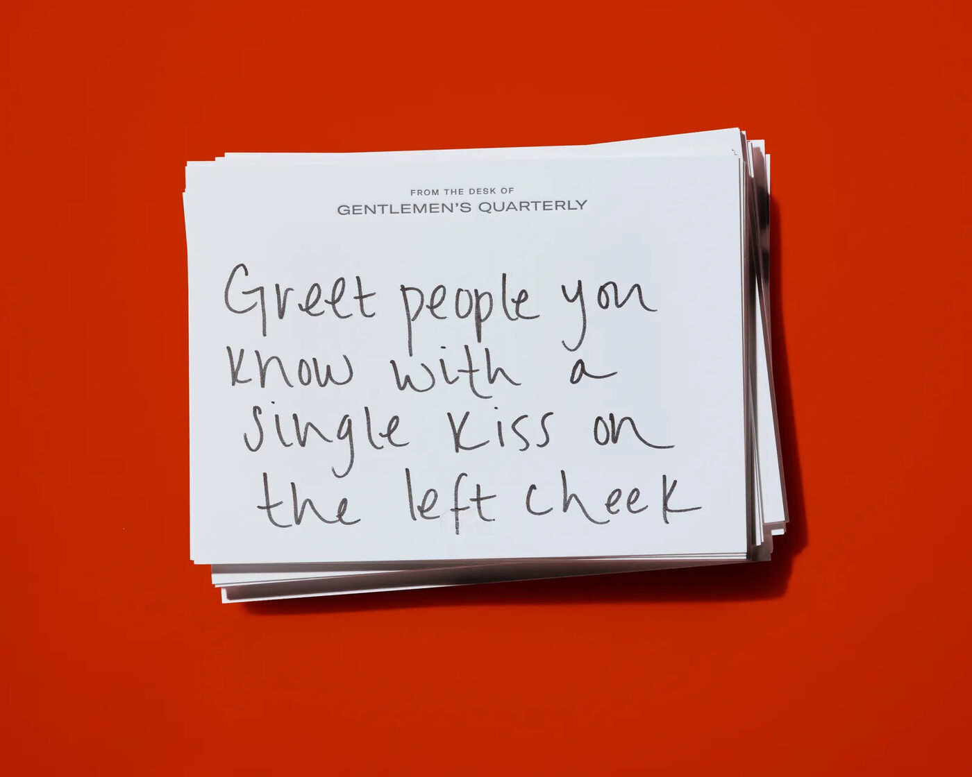온라인 데이팅 예절에서부터 여성만 있는 필라테스 수업에서 어떻게 행동해야 하는지, 언제 니코틴 파우치를 꺼내야 하는지까지. 감사 인사를 전하는 법과 공공장소에서 배려 있는 사람이 되는 법, 초대된 저녁 식사에서 바른 행동까지 광범위하게 다룬다. 어디서든 가장 예의 바른 사람이 되는 125가지 방법이다. 상황별 기사로 나누어 업로드할 예정이다. 이 간단한 매너만 지켜도 친구, 연인, 동료, 가족과 비행기 옆자리에 앉을 사람들까지 모두 당신에게 호감을 가지게 될 것이다.