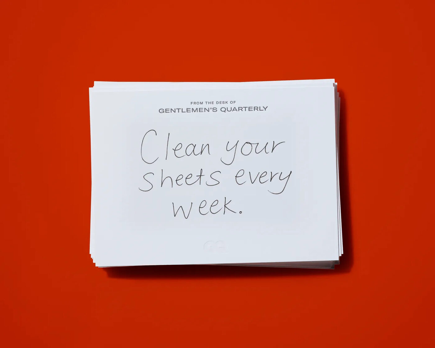 28. 침대 시트는 매주 세탁해라. 더 좋게는 몇 세트를 구입해 순환해서 사용해라. 시트는 검정색이나 네이비, 폴리에스터가 아니라 반드시 면이나 린넨이어야 한다.