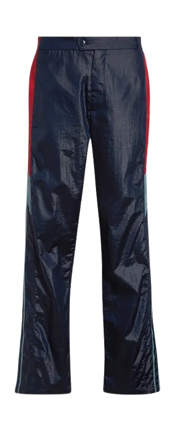 영국 디자이너 마틴 로즈의 90년대풍, 장난스럽고 독특한 미학은 오늘날 스포츠웨어 영향을 받은 패션에서 존경받는다. 그녀의 팬츠는 전통적인 테일러드 팬츠처럼 벨트 루프까지 갖춘 디자인으로, 편안하면서도 격식을 갖춘 경계에 위치한다.