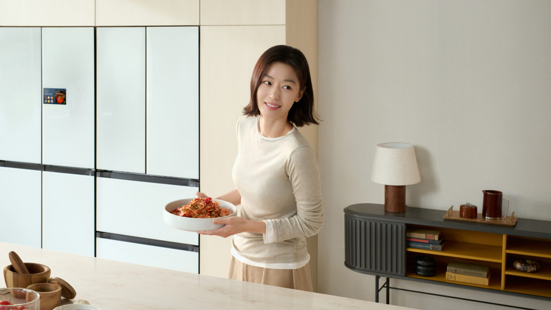 이번 시즌, 전지현은 삼성 Bespoke AI 김치플러스와 함께 김치를 주제로 세 가지 요리를 선보였다. 레시피의 핵심은 간단하다. 바로 ‘김치의 숙성과 보관이 완벽했을 때 가능한 맛’ 비밀은 ‘맞춤숙성실’에서 시작된다.