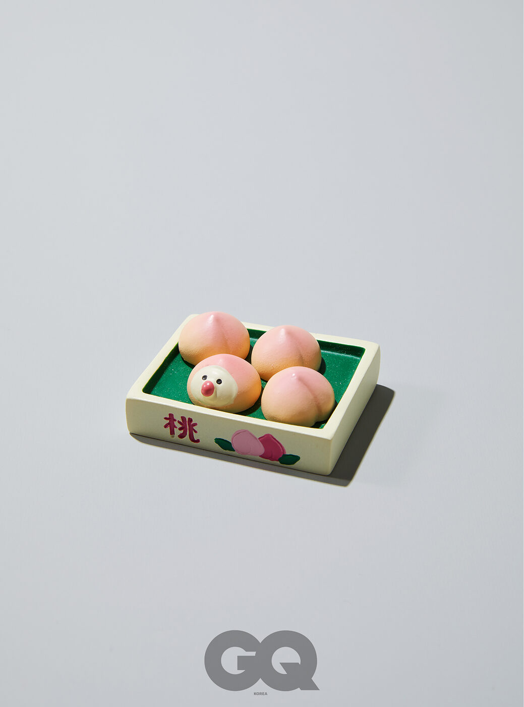 히토미가 꼽은 자신과 닮은 소장품 . “제주도에 멤버들 다 같이 갔을 때 소품 가게에서 샀어요. 제가 복숭아라는 별명이 있거든요. 보자마자 반해버려서 항상 화장대 위에 올려두고 있어요.”