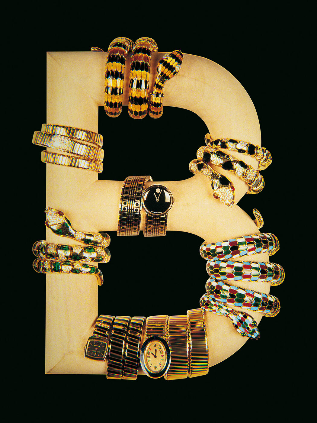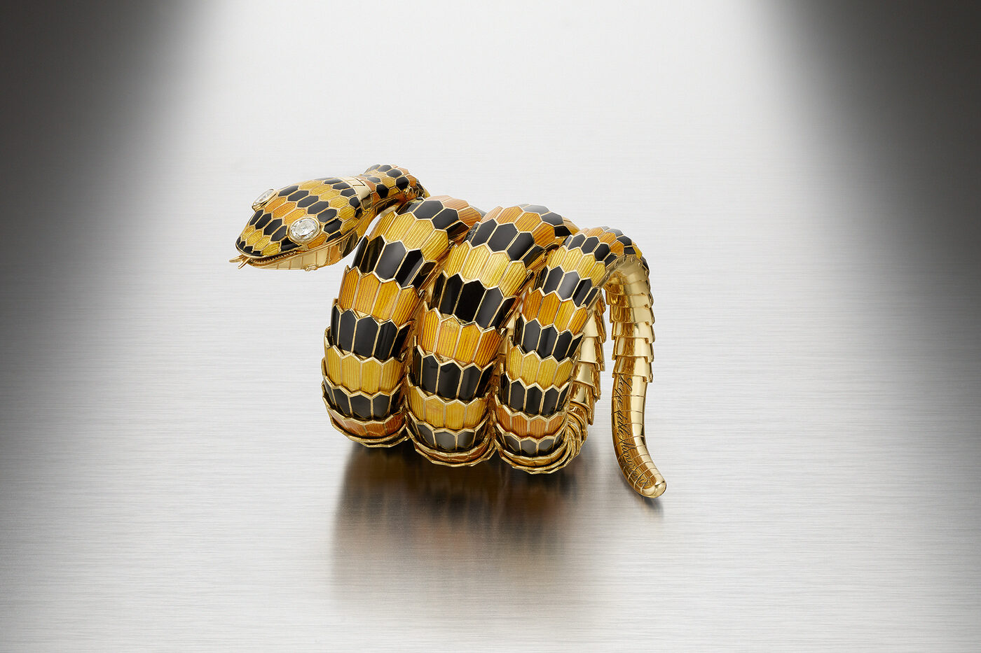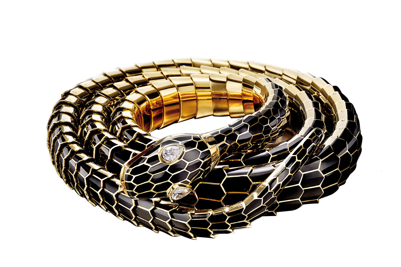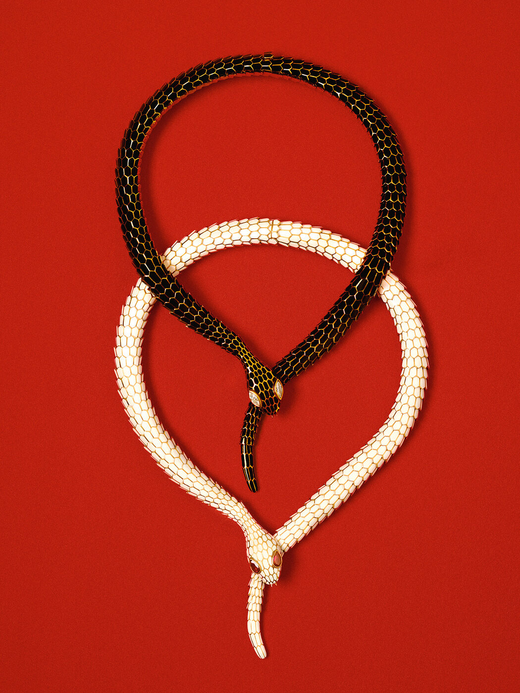 1970년에 제작한 블랙 에나멜과 다이아몬드가 세팅된 골드 네크리스와 화이트 에나멜, 루비가 세팅된 골드세르펜티 네크리스. ©Matthieu Lavanchy