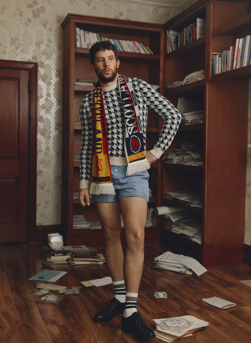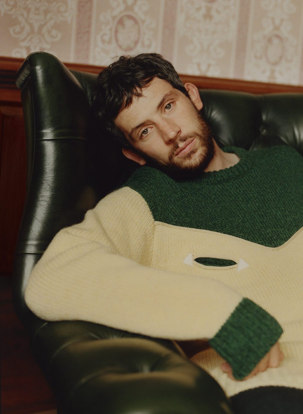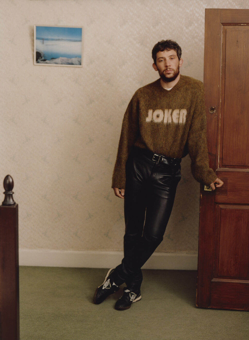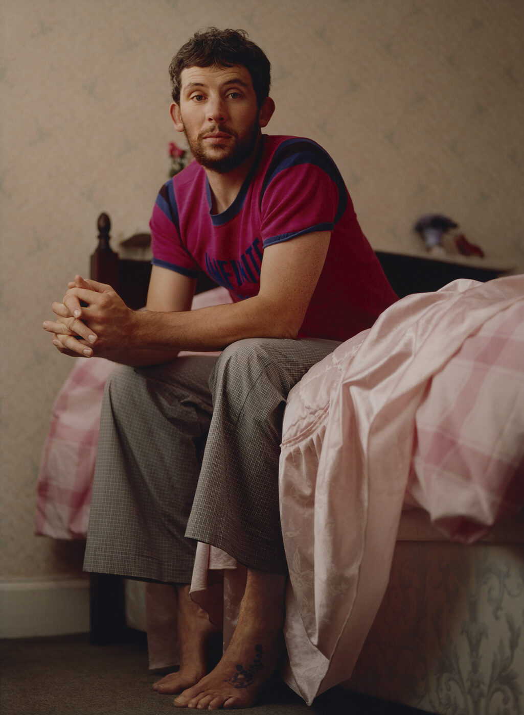 <챌린저스> 이전의 조시 오코너는 별로 주목받지 못했다는 말이 아니다. 그가 보여준 찰스 왕세자에 대한 공감 어린 연기는 군주제를 반대하는 공화주의 지지자들에게조차 묘하게 새로운 감정을 불러일으켰다. 어느 언론의 헤드라인이 이렇게 표현했듯이. “아, 안 돼. <더 크라운> 속 찰스 왕세자에게 반하다니!” 루카 구아다니노 감독과의 <챌린저스>라는 영화도 그를 새로운 시각으로 조명했다. 갈망의 대상으로, 근육이 드러나고 땀에 젖어 있으며 자신의 섹슈얼한 매력을 당당히 어필하는 모습으로. 오코너는 SNS를 하지 않고, 설령 한다 해도 댓글은 읽지 않을 것이다. 그 댓글들은, 한마디로 표현하자면 음담패설 수준이다. 가령 그가 로에베와 찍은 틱톡 영상을 보자. 그 영상은 오코너가 숨을 들이마시는 장면(무언가 말하려고 입을 여는 순간 화면이 잘린다)과 함께 모더니스트 스타일의 빌라 주변을 둘러보는 짧은 클립들이 연속되는 편집본이다. 소파에 앉은 오코너의 넥타이는 무릎 아래까지 우스꽝스럽게 길게 늘어져 있다. 이 영상은 1천1백50만 회 이상 재생됐다. 상위 댓글 중 하나에는 이렇게 적혀 있다. “혹시 모르니까 몸의 털을 전부 밀어둘게요.” 이 댓글에 3만 개의 ‘좋아요’가 달렸다. 인터넷상의 이런 온갖 욕망들에 대한 이야기를 그의 부엌 식탁 위로 꺼내오자 오코너는 그것이 자신과 관련 있다고 인정하기를 꺼린다.