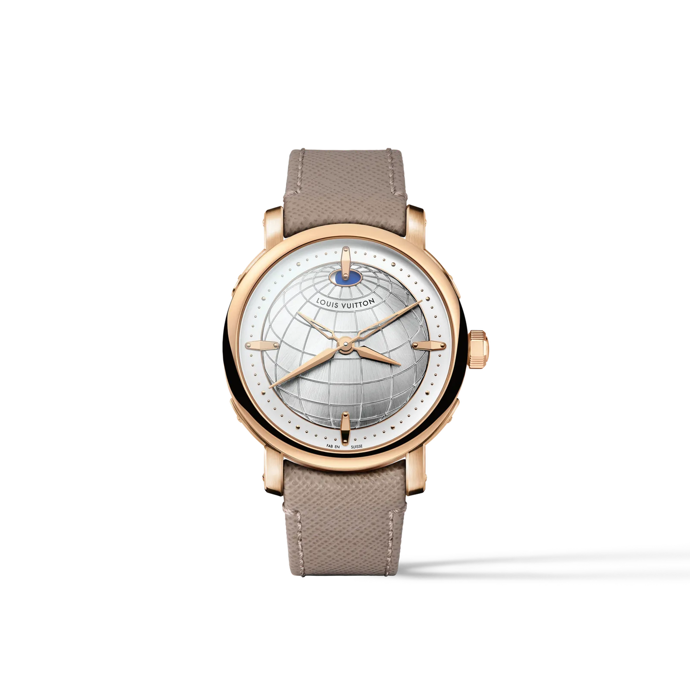 대부분의 여행자에게 GMT 핸드 하나면 두 개 혹은 세 개의 시간대를 동시에 확인하는 데 충분하다. 하지만 인도나 호주 중부처럼 GMT 기준으로 30분이나 45분 단위로 어긋난 지역에서는 문제가 생긴다. 이를 해결하기 위해 루이 비통은 에스칼 트윈 존을 선보였다. 하나의 GMT 핸드 대신, 일반 핸즈 세트와 스켈레톤 처리된 두 번째 핸즈 세트를 함께 사용한다. 이 두 번째 세트는 분침을 독립적으로 조절할 수 있어 30분이나 45분 오프셋을 정확히 반영할 수 있고, 시침은 한 시간 단위로 손쉽게 점프 조정이 가능하다. 로즈 골드 버전과 다이아몬드 세팅 플래티넘 버전으로 출시되며, 홈 타임과 연동된 우아한 낮밤 인디케이터와 루이 비통의 라 파브리크 뒤 떵 소속 워치메이커들이 개발한 새로운 LFT VO 15.01 무브먼트를 탑재했다. 퍼스트 클래스 여행자를 위한 세컨드 타임존 표현 방식으로 이보다 더 세련된 선택은 찾기 어려울 것이다.