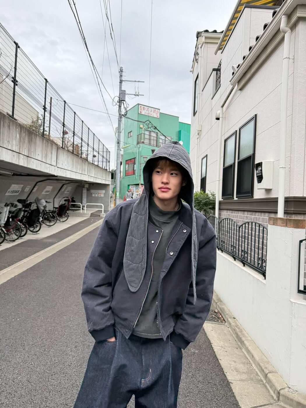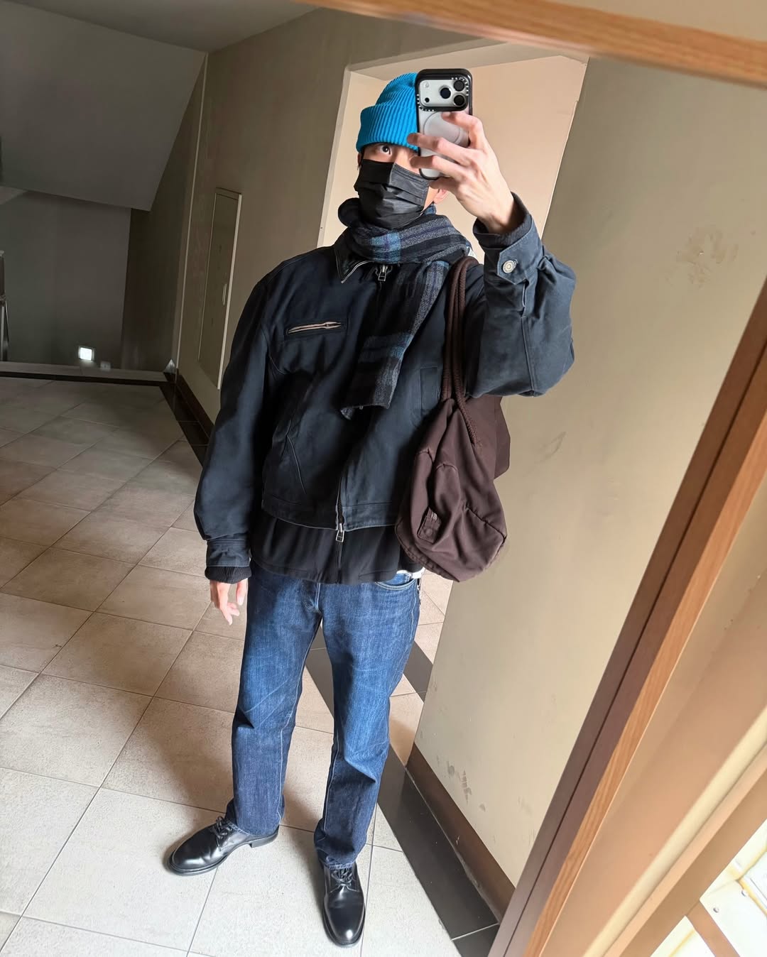 잘 산 봄버 재킷 하나면 열 아우터 부럽지 않다. 평소 미니멀하고 깔끔한 룩을 즐겨 입는 것으로 알려진 투바투의 수빈. 봄버 재킷은 의외로 포켓 장식과 디테일이 더해진 디자인을 선택했다. 아웃 포켓이나 밑단 밴딩 등 스포티한 디테일이 들어간 봄버 재킷에 그레이 후드티를 레이어드했고, 아우터와 이너의 길이감을 맞춰 균형감 있게 연출했다. 여기에 안경 포인트로 트렌디함을 잃지 않는 센스까지. 디테일이 많은 봄버 재킷이라면 컬러는 카키 그린, 세이지 등 톤 다운된 컬러를 추천한다.