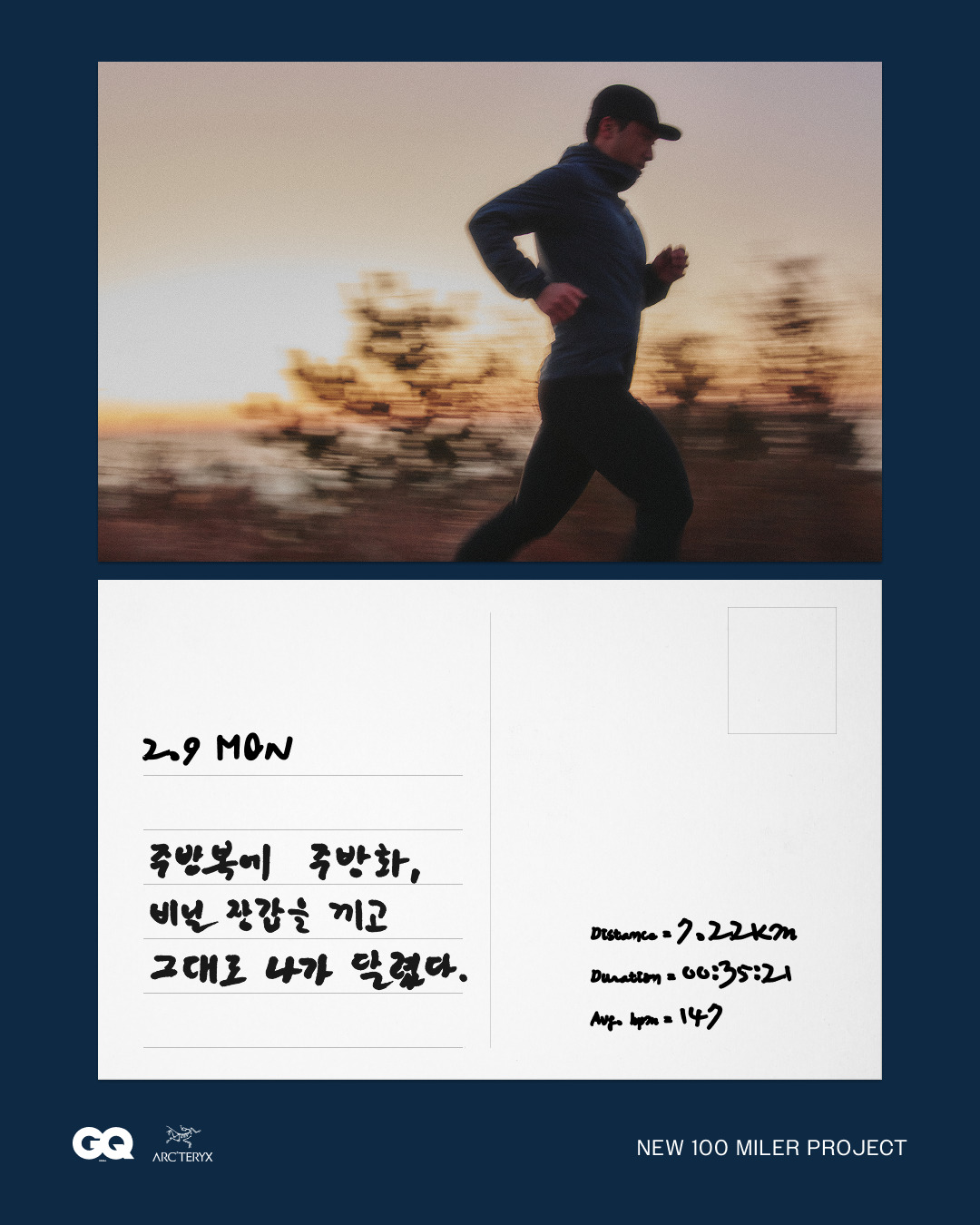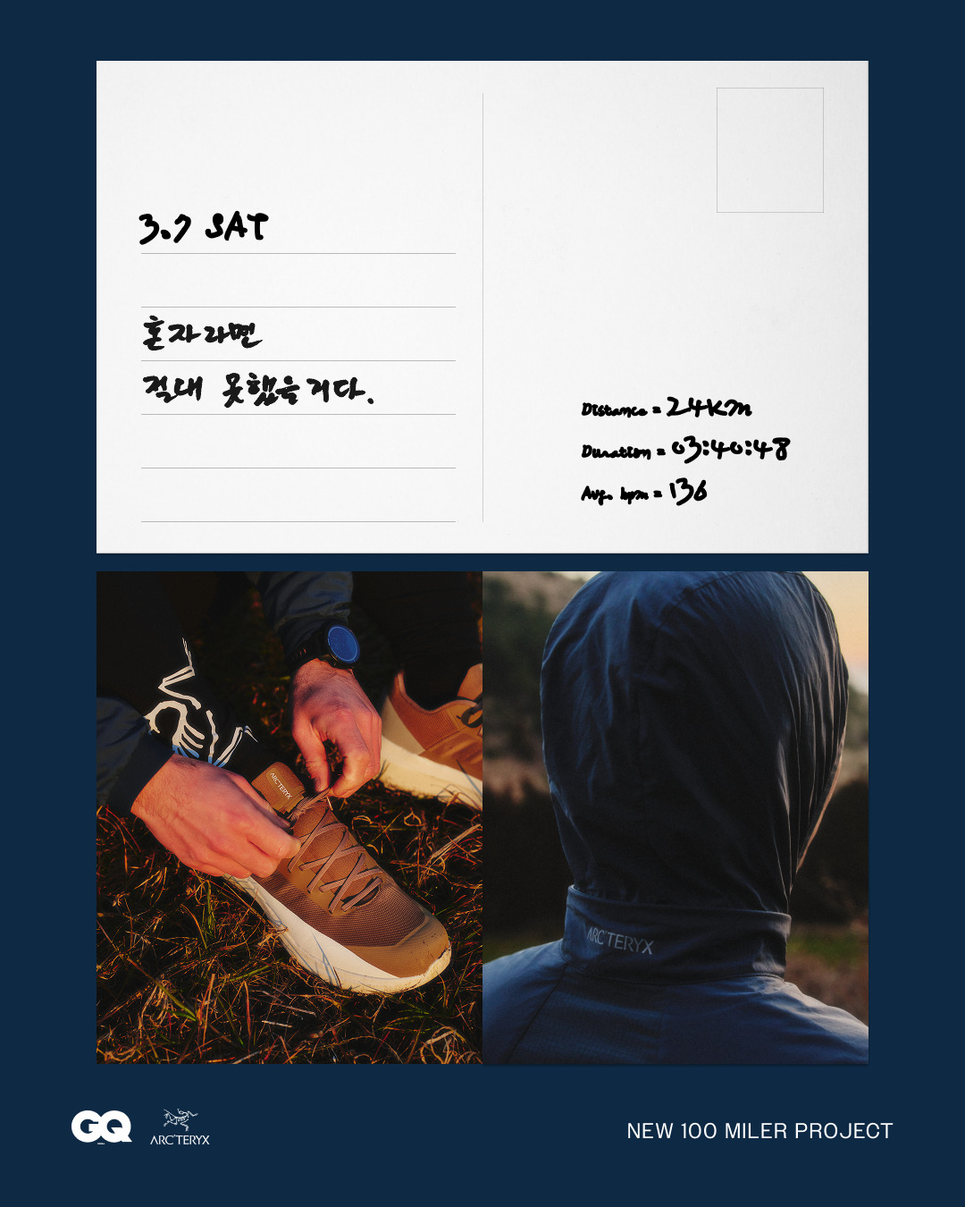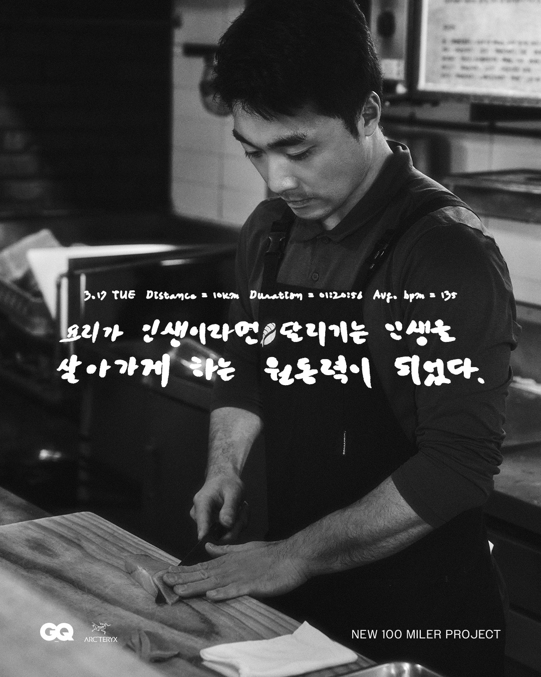 제주 ‘타쿠마스시’ 총괄 강승현 셰프가 아크테릭스 트레일 러닝 애슬릿 염주호 선수와 ‘뉴 100마일러 프로젝트’를 진행한다. 약 160km의 달리기를 앞둔 그가 써내려간 100일간의 훈련 일지와 손글씨를 이 곳에 공개한다 . 그가 달리면서 생각한 것들.