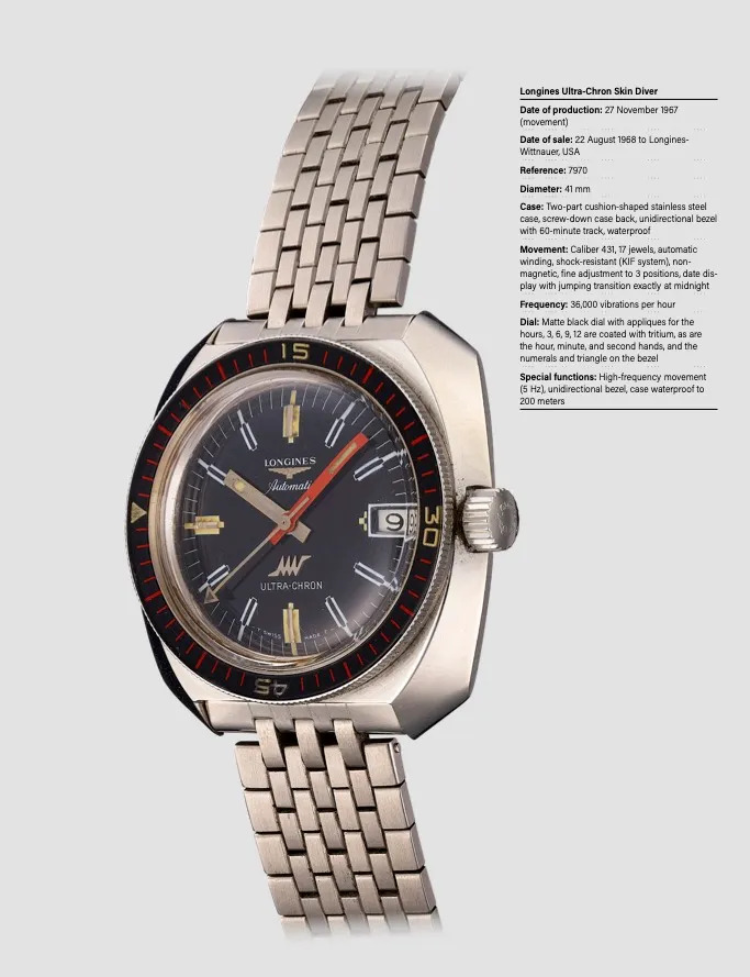 ±2초 수준의 높은 정확도를 자랑한 시계로, 200m 방수 성능과 독특한 케이스 디자인을 갖췄다. 당시 다이버 워치 흐름 속에서도 독보적인 모델이다.