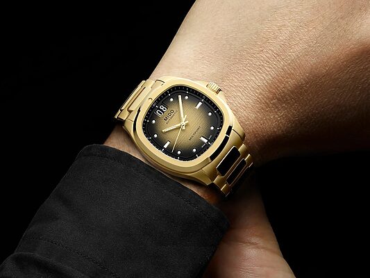 빛바랜 빈티지 옷을 입고 반짝이는 새 시계를 찼다.