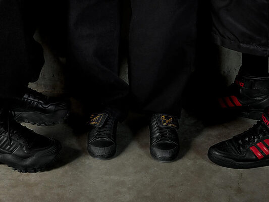 레드 오버사이즈 패딩 점퍼 3백38만원, 나일론 트랙 팬츠 1백48만원, 더블 범퍼 스니커즈 가격 미정, 모두 릭 오웬스. 퍼 폴딩 햇 가격 미정, 캉골.