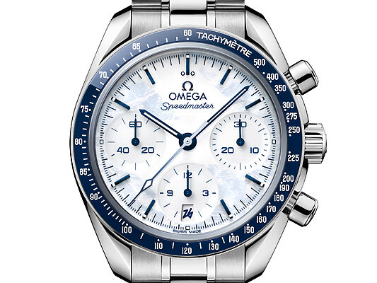 루센트 스틸 A223 소재 크라운엔 생 모리츠 컬렉션에서 모티프를 얻은 나침반 문양을 양각으로 새겼다.