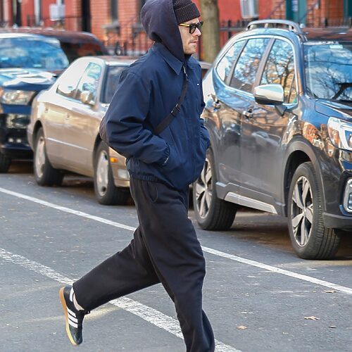 옐로 크롭트 푸퍼 재킷, 데님 스커트 팬츠, 블랙 와이드 로고 브리프, 옐로 스니커즈 가격 미정, 모두 발렌시아가.