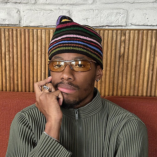 그린 보 스웨터 가격 미정, 로에베. 그레이 쇼츠 가격 미정, 디올 맨. 블랙 스톰프 로퍼 9만9천원, 크록스. 블랙 니 삭스 가격 미정, 아미.