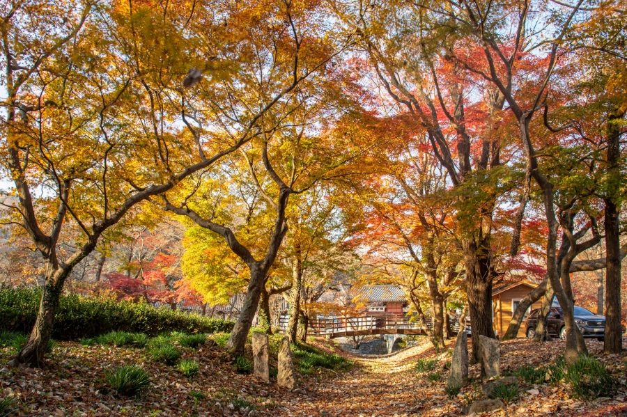 벽처럼 서있는 산 앞에 서고 싶다면, 구례와 하동. 지리산 국립공원이 걸쳐있는 곳으로, 어디를 봐도 첩첩이 초록이 보이고, 섬진강이 흐른다. 긴 산맥에 둘러싸여 있는 만큼, 계절의 변화의 아름다움에 압도당할 수 있는 곳. 구례는 강을 따라 나 있는 대나무숲길과 풍경을 감상하기 좋은 스카이워크 ‘구례 스타웨이’, 천년고찰 ‘화엄사’ 등 평화롭게 걷기 좋은 여행지다. 하동에는 ‘쌍계사’라는 작은 절이 있는데, 이름에서 알 수 있듯 두 개의 계곡이 흐르는 풍경이 아름답기로 유명하다. 외에도 녹차로 유명한 하동인만큼, ‘정금다원’, ‘매암제다원’ 등의 녹차밭을 둘러보는 것도 좋은 산책이 될 것. 걷기 좋은 가을엔 어디보다도 큰 만족감을 줄 수 있는 여행지다. 멀지 않은 순천에는 ‘순천만 국가정원’도 조성되어 있어 함께 들러보는 것도 추천한다.