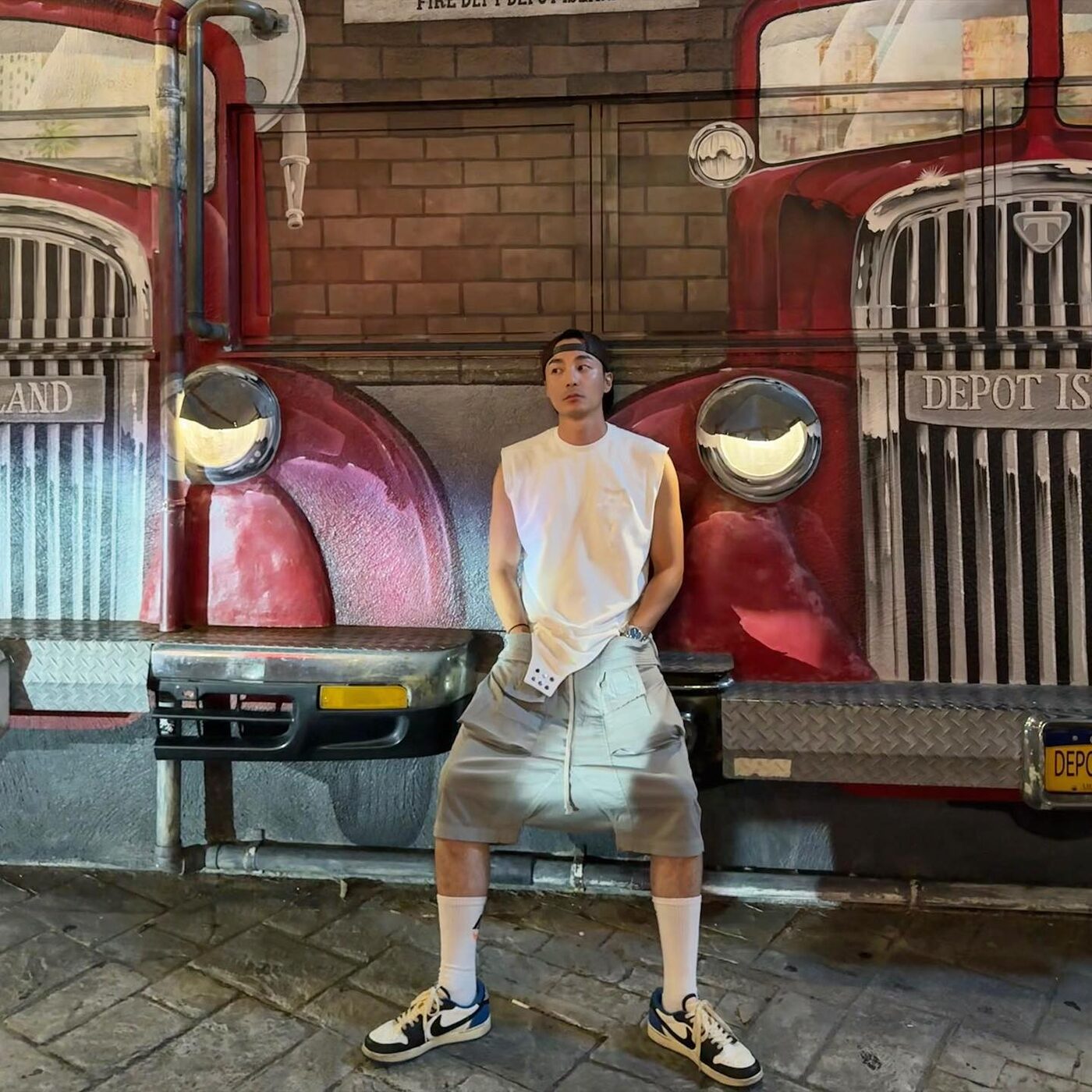 풀사이드, 야경 산책, 호텔 엘리베이터 셀피까지. 로이킴의 오키나와 휴가룩은 각 상황에 맞춘 스타일링이 눈에 띈다. 수영장에서는 빈티지 캡 하나로 쿨한 분위기를, 저녁 외출에는 민소매 티셔츠와 벌키한 쇼츠, 하이삭스로 스트리트 무드를 연출했다. 여기에 셔츠와 버킷햇을 더해 여유로운 무드까지 챙겼다. 여름 남친룩의 좋은 참고서! @roykimmusic