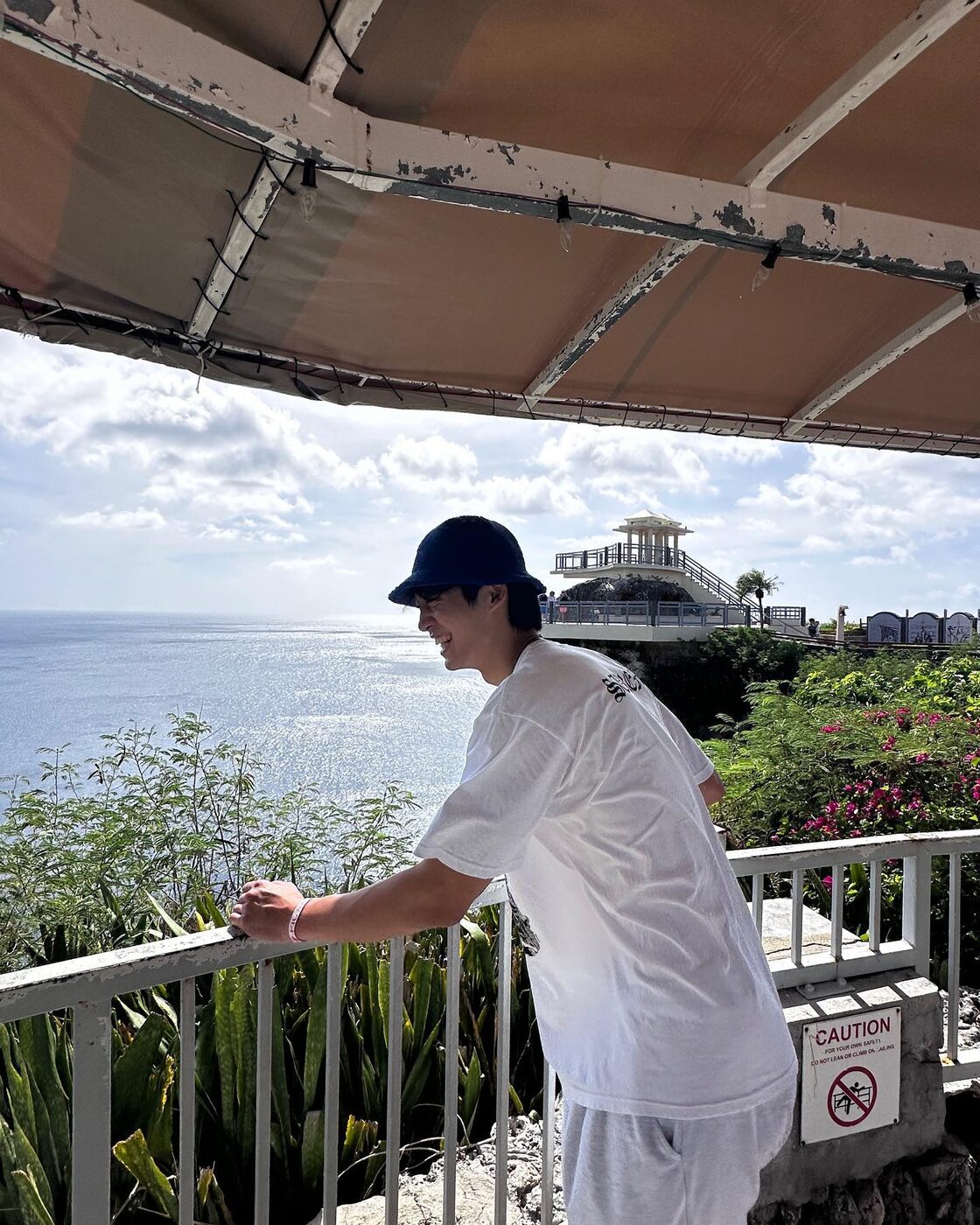 실력과 외모 모두로 주목받는 농구선수 여준석. 203cm의 피지컬을 자랑하는 그의 괌 여행 룩은 편안한 꾸안꾸 코디를 찾는 이들에게 제격이다. 헐렁한 화이트 티셔츠에 스웻 팬츠, 네이비 버킷햇을 매치한 조합은 실용성과 스타일을 동시에 챙긴 선택. 전체적으로 화이트 톤을 맞춰 햇볕 아래서도 시원해 보이며, 튀지 않는 컬러감 덕분에 누구나 부담 없이 따라 할 수 있다. 손목에 더한 가벼운 팔찌로 마무리한 디테일까지도 놓치지 말 것. @ye0_22