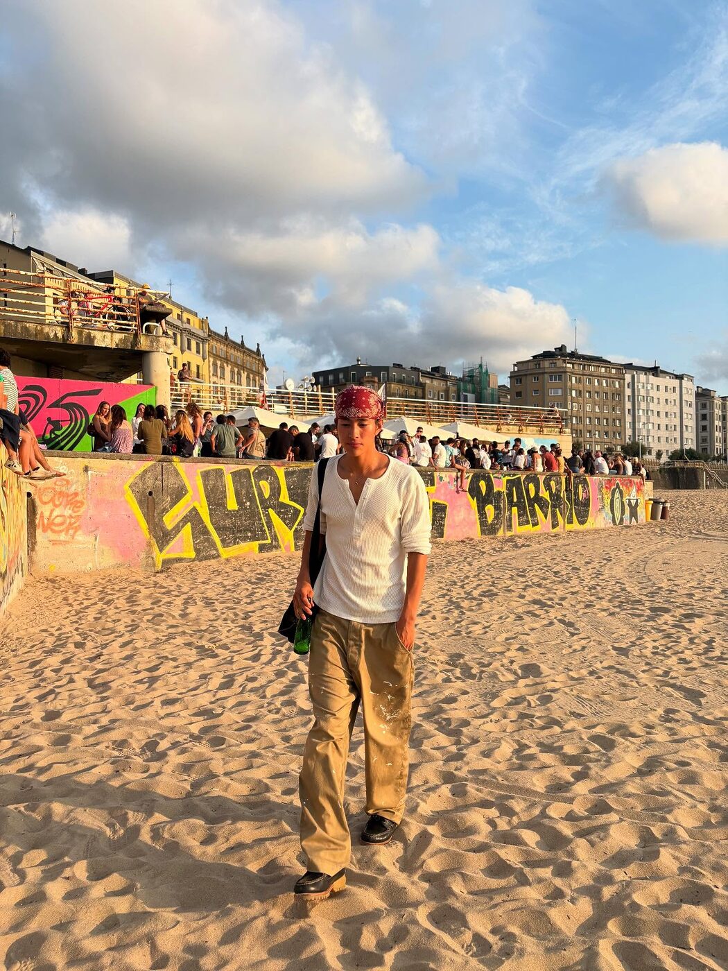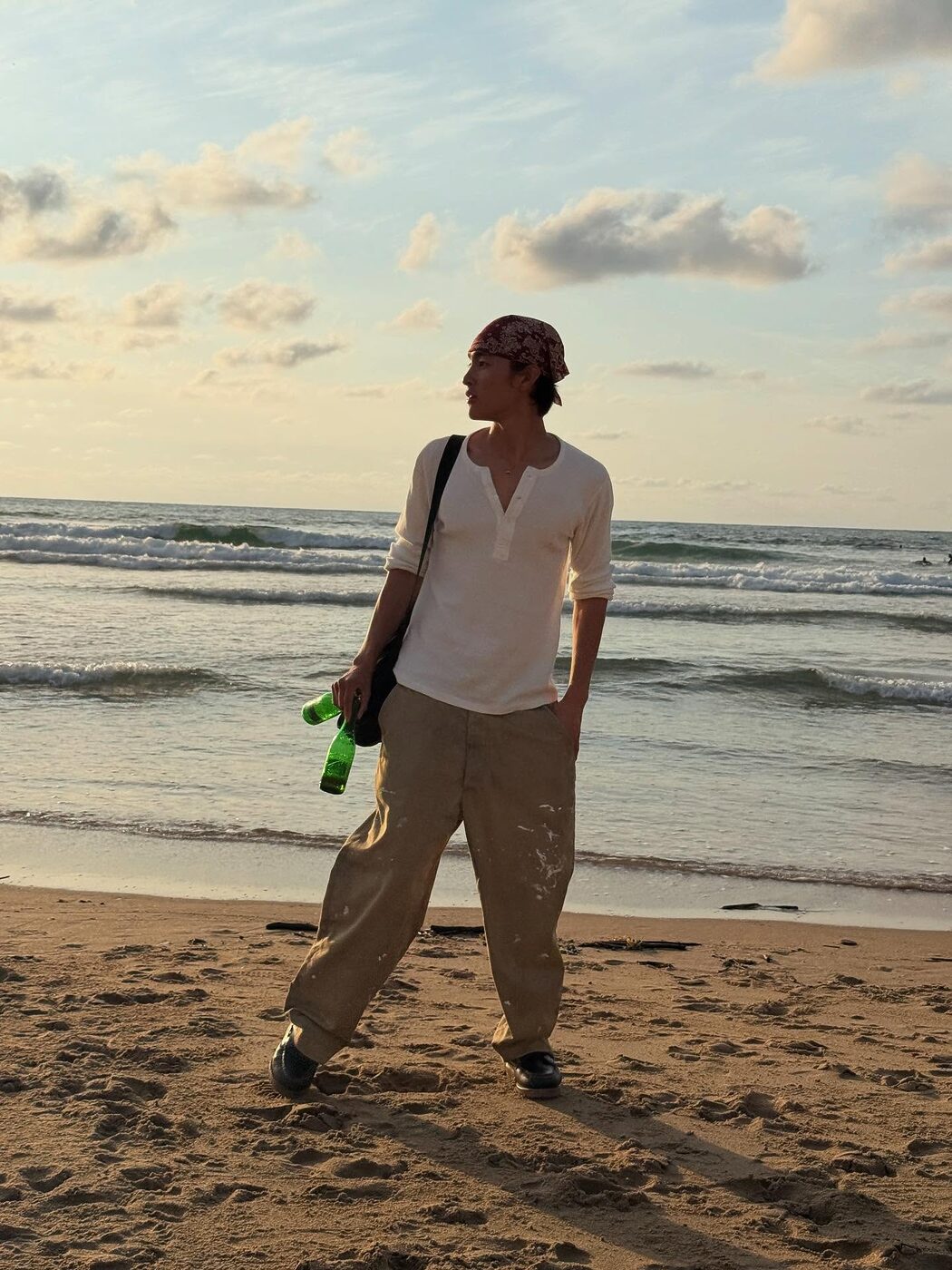 여행에서 돌려 입기는 현실적인 선택. 홍태준은 같은 카고 팬츠를 다양한 스타일로 소화하며 실용성과 스타일을 모두 잡았다. 해변에서는 헨리넥 톱, 레드 반다나, 더플백을 더해 보헤미안 무드를, 도시에서는 프린팅 티셔츠와 핑크 니트 가방으로 경쾌한 분위기를 연출했다. 같은 팬츠와 슈즈를 기반으로 상의와 소품만 바꿔 완성한 전혀 다른 두 가지 룩. 부담 없이 따라 할 수 있으면서도 개성은 분명한, 현실적인 여름 코디의 좋은 예다. @300ver