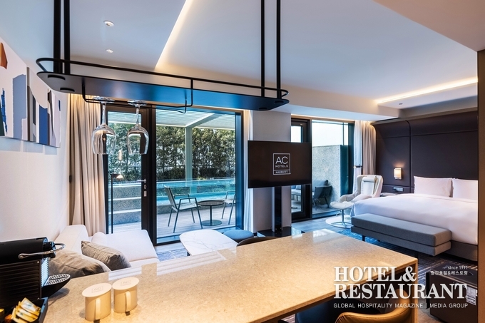 도심 한가운데에 무려 프라이빗 풀이 있는 객실이 있다. 밖으로 보이는 나무가 시원함을 더해준다. 도심에서 이러한 뷰를 즐기는 것은 드물 것이다. 이렇다 보니 프러포즈나 특별한 기념일에 많이 찾는 호텔이기도 하다. 루프바에서 야경을 보며 무제한 와인과 위스키, 수준급 요리를 맛볼 수 있는 ‘클라우드 선셋 치어스 아워’로 하루를 마무리한다면 하루 더 쉬고 싶을지도 모른다.
