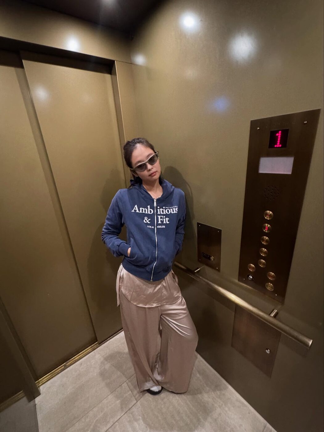 제니의 트레킹 선글라스 매치하는 법은? 카모 볼캡, 슬리브리스 톱, 와이드 스웨트팬츠 조합으로 빈티지한 스트리트 무드를 만들기도 하고, 집에서 막 나온 듯한 잠옷 위에 후드티를 걸친 편안한 차림에도 선글라스를 더해 무심한 멋을 연출하기도 했다. 아웃도어 아이템이지만 유선형의 매트한 디자인 덕분에 투박함보다는 세련됨이 강조되는 것이 특징. 요즘 유행하는 Y2K, 고프코어 분위기와도 찰떡같이 어울리는 선택이다. @jennierubyjane