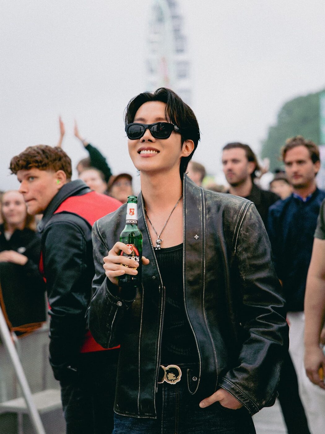 제이홉이 고른 선글라스는 라운드 스퀘어 쉐입. 핑크 틴트가 들어간 선글라스는 그의 경쾌한 이미지와 딱 맞아떨어지고, 블랙 렌즈 버전은 보다 시크한 무드를 만들어낸다. 캐주얼한 룩은 물론, 무대 의상에도 매치하면서 선글라스 하나로 분위기를 전환하기도. 독특한 프레임과 위트 있는 힌지 장식이 더해져 얼굴선도 또렷하게 살려준다. @uarmyhope