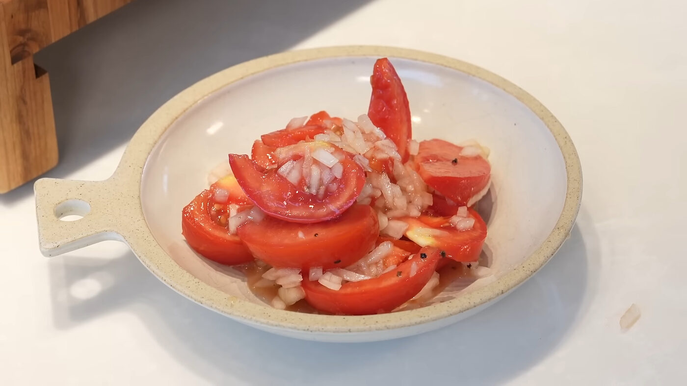 무더운 날씨로 입맛이 뚝 떨어질 때, 성시경이 추천하는 초간단 다이어트 메뉴는 토마토 샐러드다. 토마토와 양파를 썰어 올리브오일, 레몬즙을 곁들이면 끝. 100g당 18~22kcal에 불과한 토마토 덕분에 부담 없이 즐길 수 있다. 시원하고 산뜻해 한 끼 대용으로도 손색 없으니, 더위에 지친 날 딱 맞는 다이어트 식단이다.