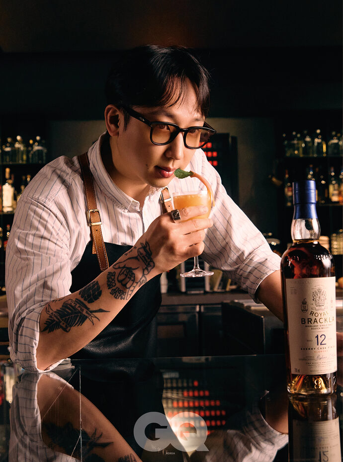 로얄 브라클라 12년의 핵과류 풍미와 스파이시하면서도 달콤한 뉘앙스 위에 사과주스, 꿀, 오스만투스를 더해 화사하고 부드러운 단맛을 입혔다. 한국의 방아잎이 ‘킥’이 되어 마치 푸른 화원을 뛰노는 느낌이다.