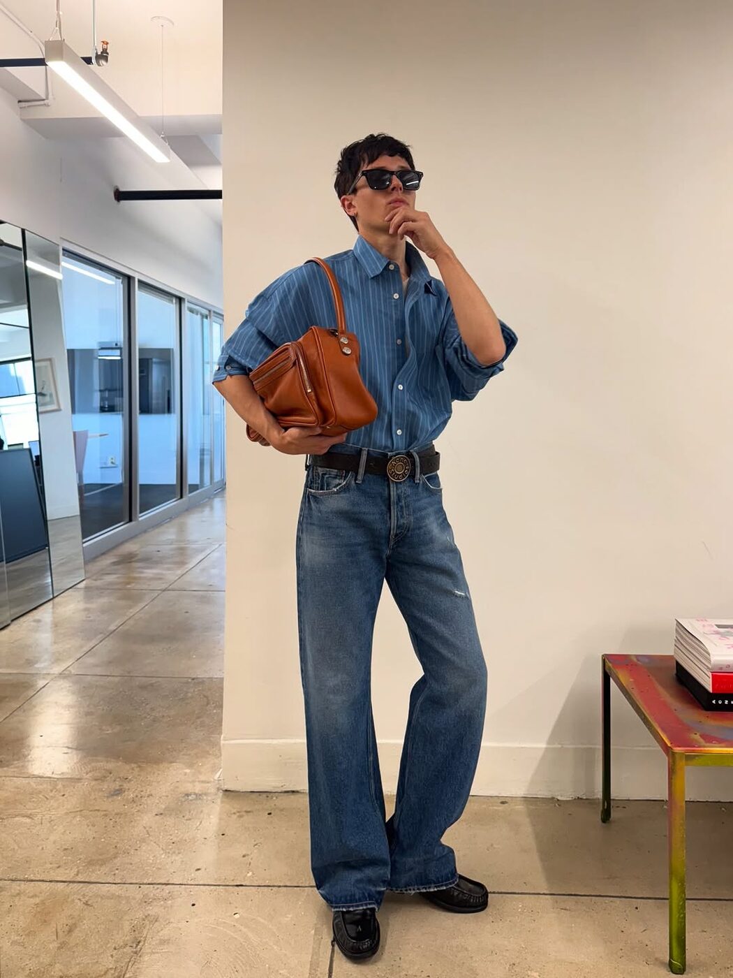 셔츠와 데님은 실패 없는 필승 조합이다. 어떤 바지를 매치해야 할지 모르겠다면, 집에 있는 데님 팬츠부터 살펴보자. 허리는 살짝 조여주면서 다리 라인은 여유 있게 떨어지는 스트레이트 핏이면 더없이 완벽하다. 청청 패션은 꼭 같은 브랜드의 셋업 아이템이 아니더라도 셔츠와 데님을 같은 컬러로 통일해 준다면, 단정하고 세련돼 보인다.