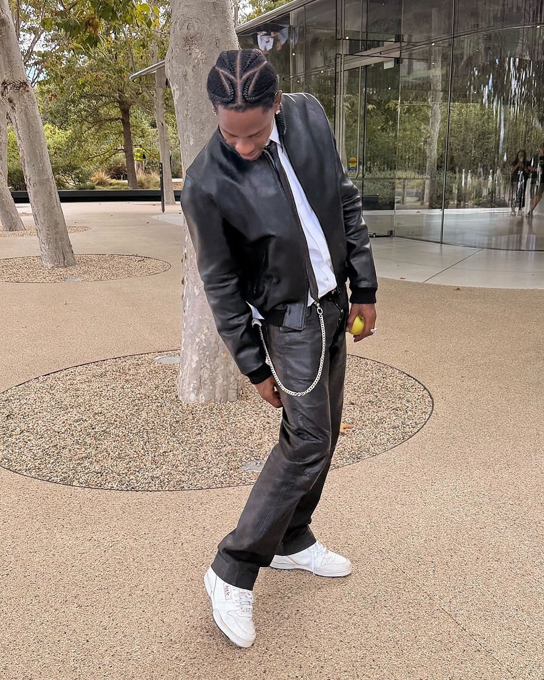 아이폰 17만큼이나 화제를 모은 건 트래비스 스콧의 발끝. 그가 신은 건 바로 1990년대 애플에서 직원용으로 제작했던 전설의 빈티지 애플 스니커즈였다. 일반 판매조차 되지 않았던 이 아이템은 현재는 컬렉터들 사이에서 수천만 원대에 거래되는 희귀템. 여기에 화이트 셔츠와 블랙 타이, 레더 재킷과 팬츠, 비니와 선글라스를 매치해 힙하면서도 레어 아이템을 빛내는 룩을 완성했다. @isaac_tremaine @katjahorvat