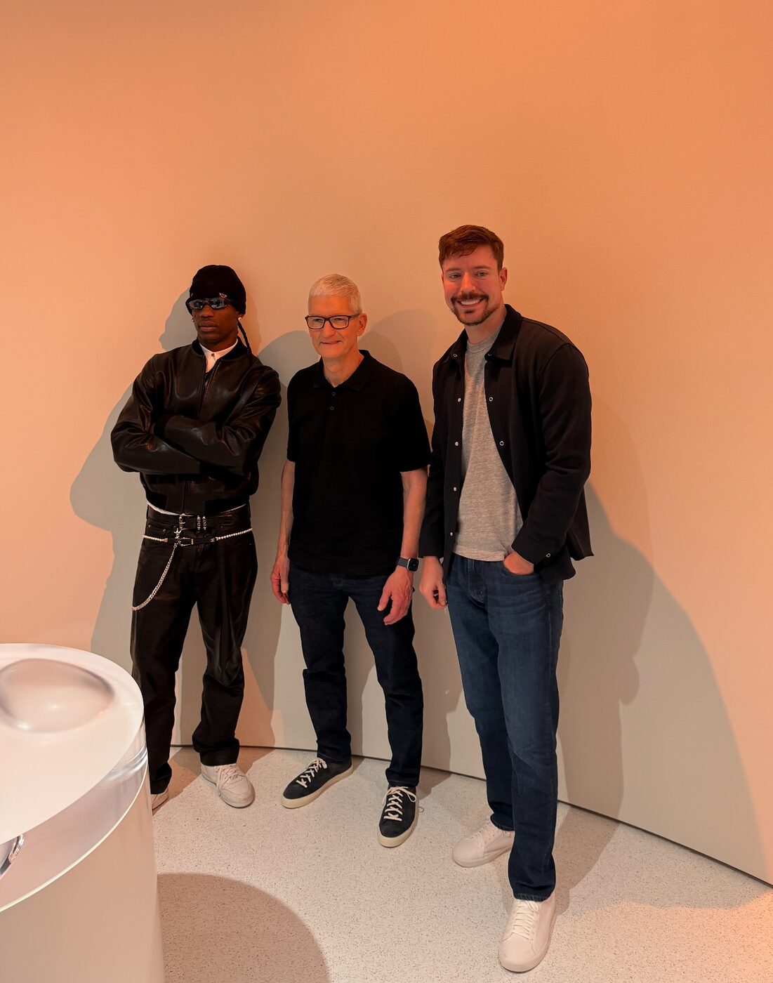 4억 명의 구독자를 보유한 세계 최정상 유튜버 미스터비스트의 등장도 단연 하이라이트였다. 그는 그레이 티셔츠에 네이비 셔츠, 데님 팬츠를 매치한 캐주얼 차림으로 참석했다. 화려한 아이템 대신 친근하고 편안한 스타일을 택했지만, 트래비스 스콧·팀쿡과 함께한 쓰리샷이 포착되며 현장의 가장 큰 화제를 모았다. @hidden.ny