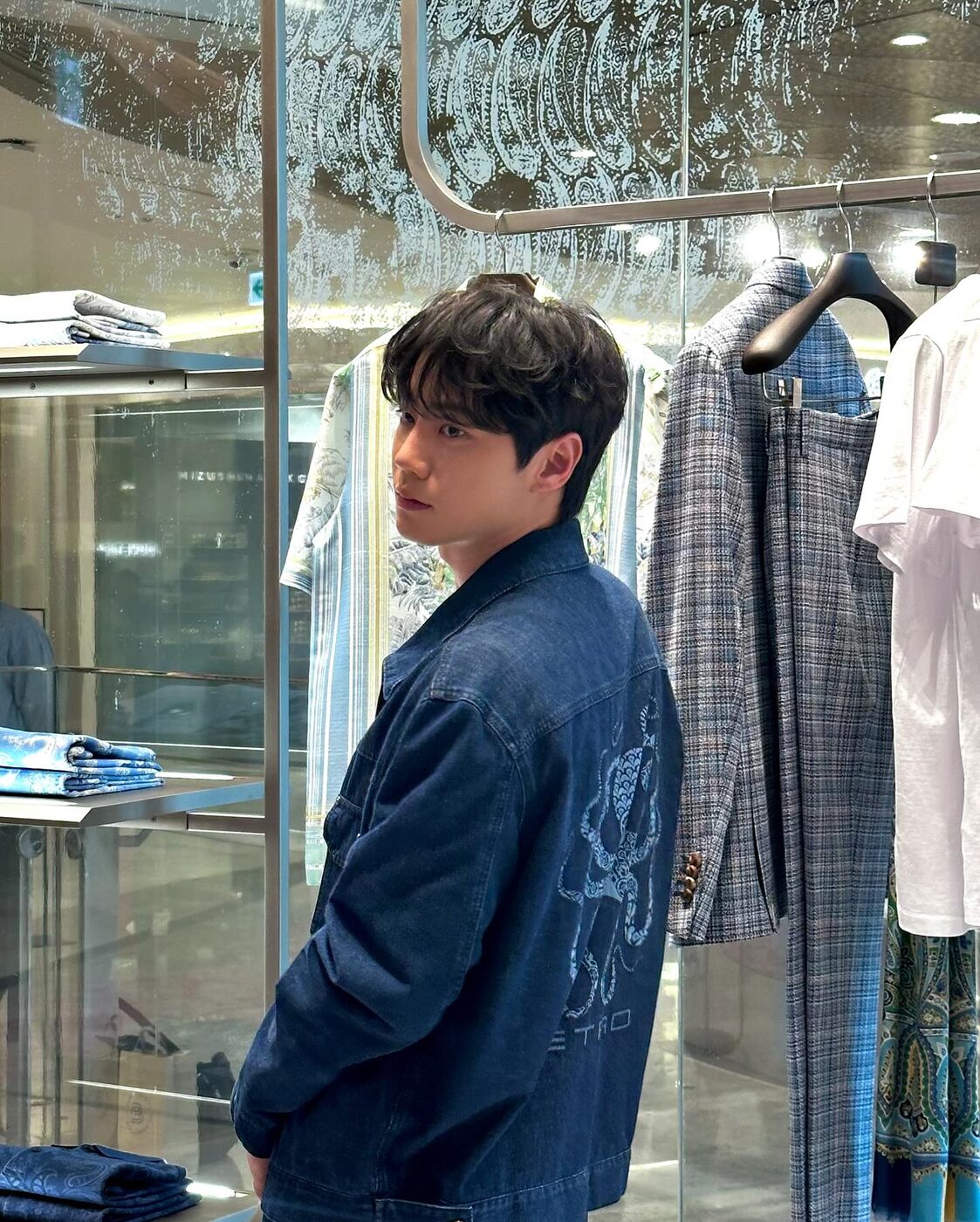 변우석이 선택한 룩은 생지 데님 셋업. 짙은 생지 데님 재킷과 팬츠를 화이트 티셔츠와 함께 매치해 맑고 깨끗한 분위기를 연출한 것. 특히 자켓과 팬츠 모두를 넉넉한 핏으로 선택하면 단정하면서도 여유로운 실루엣이 완성된다. 청청 패션을 부담 없이 시도하고 싶다면 변우석처럼 심플한 이너와 함께 루즈한 핏을 활용하는 것이 포인트다. @byeonwooseok