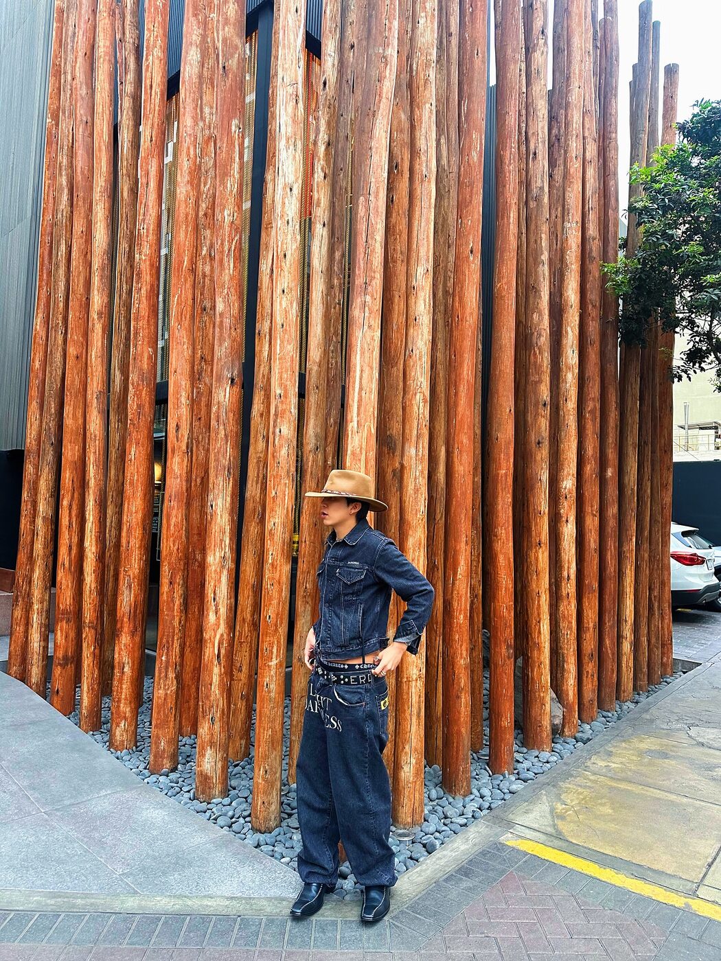 콜드는 아예 카우보이 무드를 과감하게 끌어왔다. 와이드한 데님 팬츠와 셋업에 카우보이 햇, 벨트 레이어드를 더해 개성 넘치는 스타일링을 선보인 것. 여기에 로고 플레이가 돋보이는 언더웨어를 활용한 새깅 스타일로 힙한 기운까지! 청청 패션을 한층 더 날카롭고 스트리트하게 즐기고 싶다면, 콜드처럼 앞코가 뾰족한 신발을 선택해 실루엣을 정리하는 것도 방법이다. @wavycolde