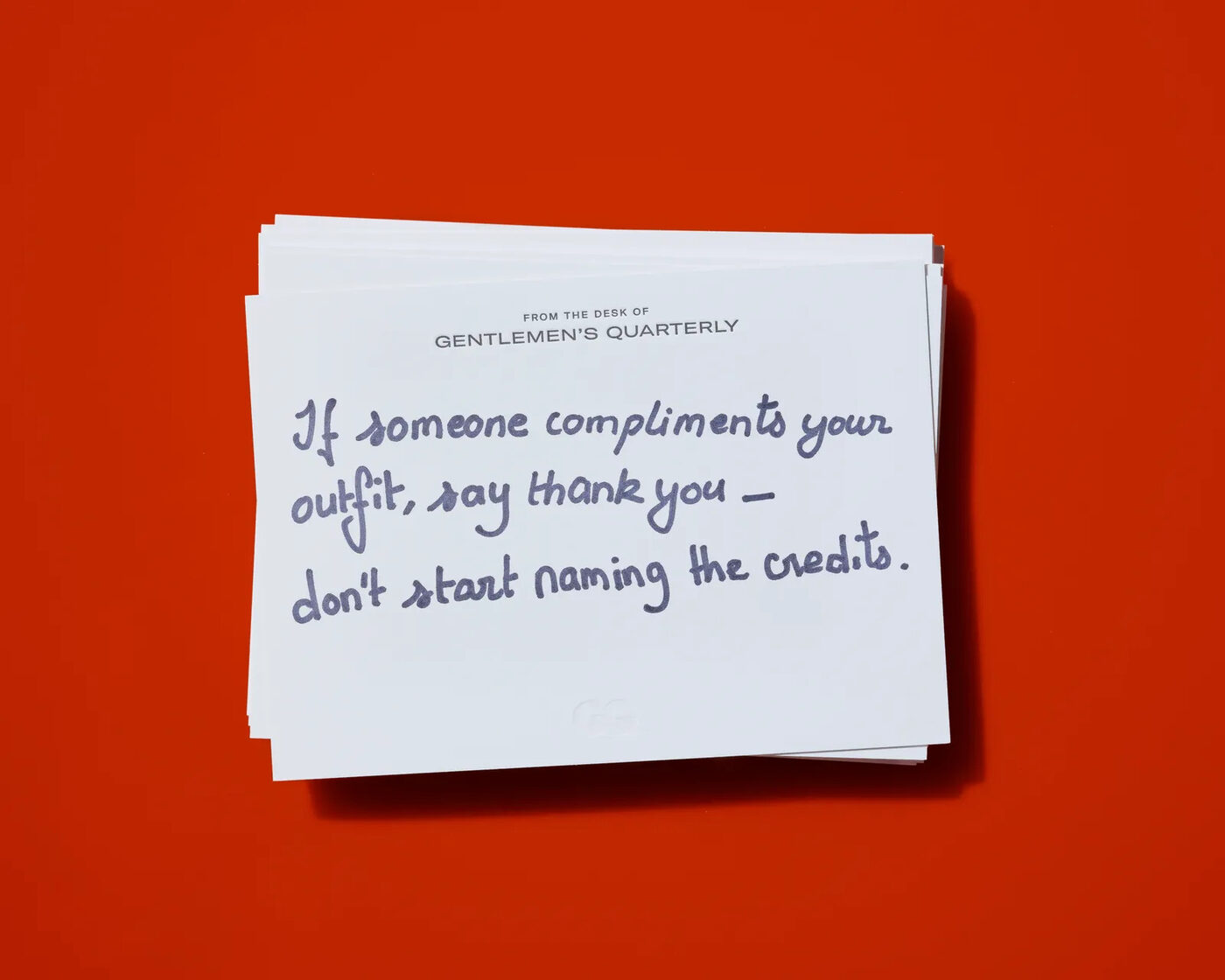 누군가 너의 옷차림을 칭찬하면, “고마워”라고 해라. 브랜드나 출처, 가격대를 나열하기 시작하지 마라. “이거 파리에서 찾은 200만원 짜리 재킷이야. 내가 이걸 근데 얼마에 샀게?”같은 대화는 필요 없다.