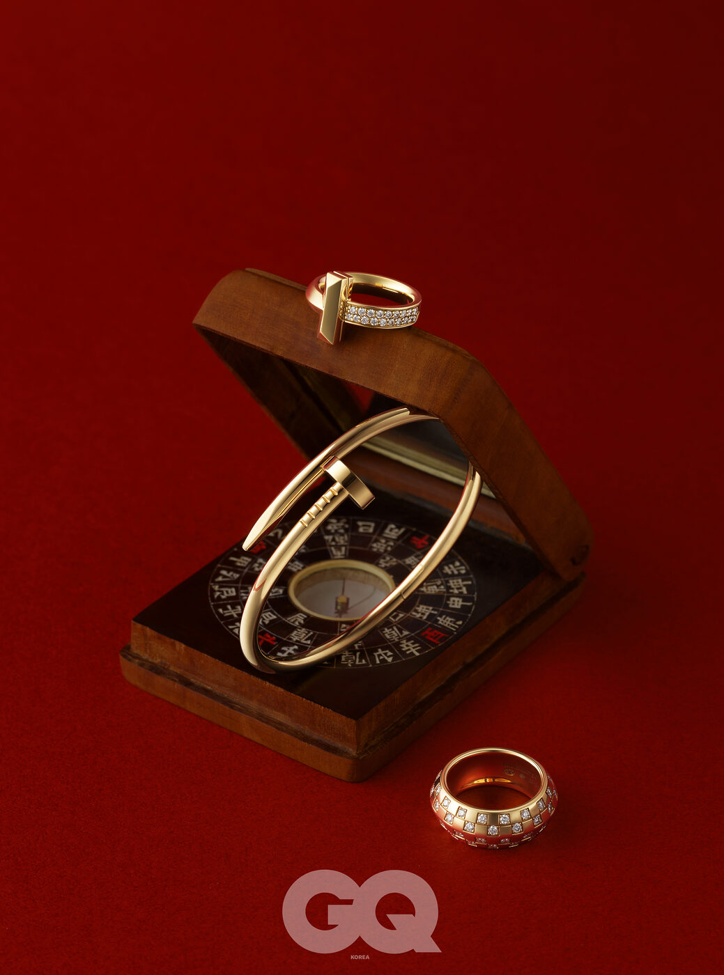 18K 옐로 골드에 라운드 브릴리언트컷 다이아몬드를 세팅한 티파니 T1 와이드 하프 다이아몬드 링 가격 미정, 티파니. 옐로 골드 저스트 앵 끌루 브레이슬릿 가격 미정, 까르띠에. 옐로 골드에 다이아몬드를 더한 르 다미에 루이 비통 링 가격 미정, 루이 비통 파인 주얼리.