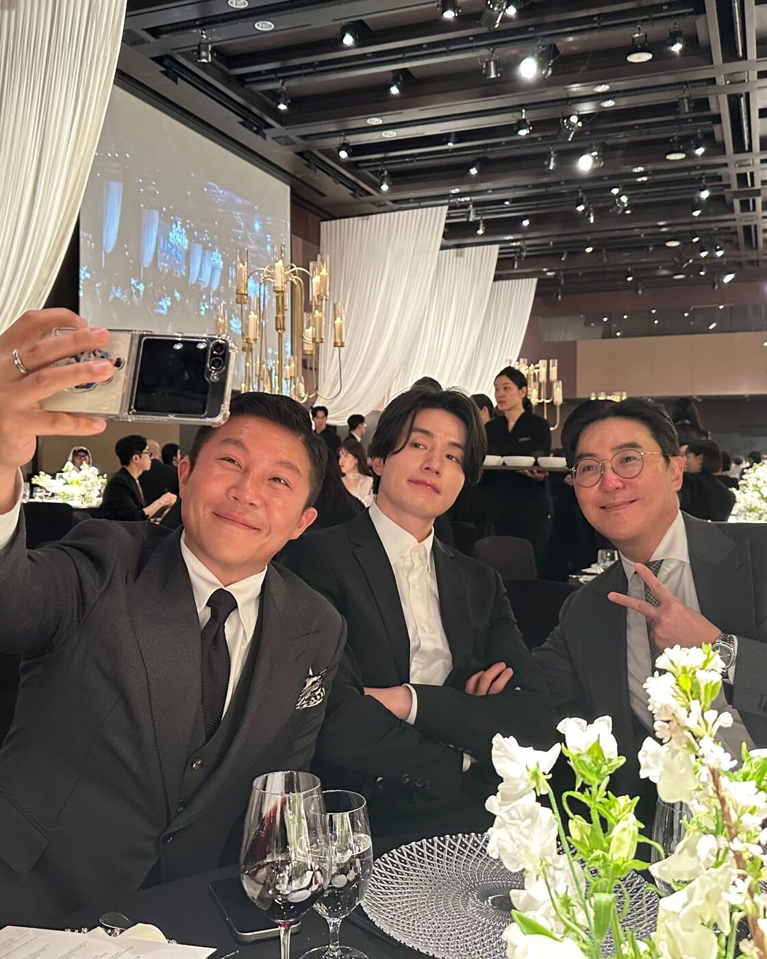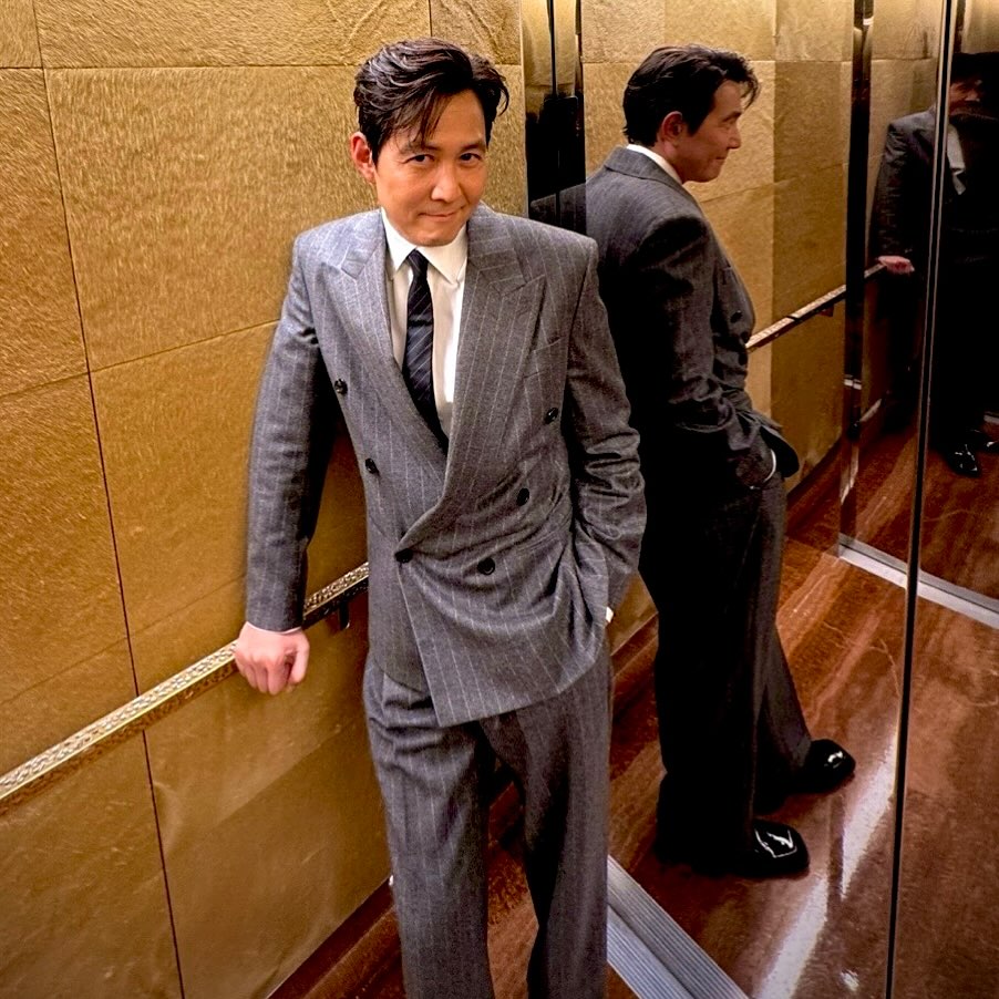 이정재는 기본 수트에 한 끗 차이를 더해 세련된 인상을 완성했다. 그의 룩 포인트는 바로 그레이 수트에 톤 다운된 네이비 스트라이프 타이, 혹은 브라운 체크 수트에 버건디 타이로 컬러 밸런스를 잡는 것! 어두운 블랙보다는 밝은 그레이나 브라운을 선택해 부드럽고 도시적인 이미지를 주고, 넥타이 컬러나 패턴으로 살짝 포인트를 더하면 신경 쓴 듯 센스가 느껴진다. 더블 브레스티드 블레이저를 선택해 클래식함에 힘을 주는 것도 좋은 방법. 특히 회사 동료 결혼식처럼 격식과 스타일 사이에서 균형을 잡아야 하는 자리라면, 이정재식 하객룩을 참고해 볼 것. @from_jjlee