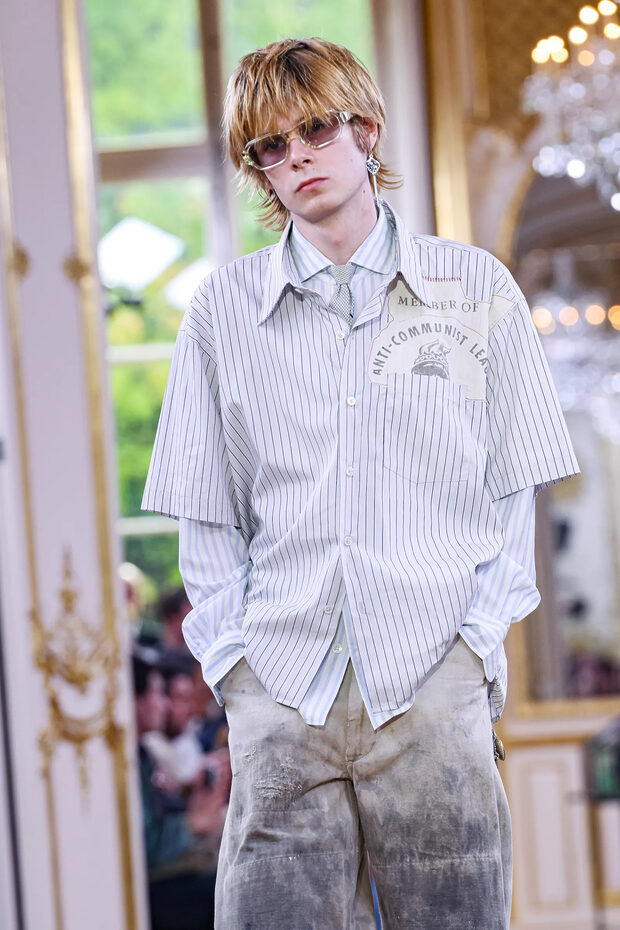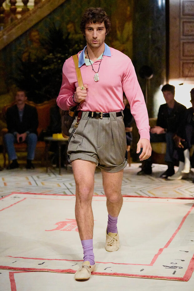 여성복 중심 시즌이었음에도 불구하고, 이번 시즌의 남성복 트렌드는 가죽 신발과 패딩 트렌치코트처럼 상점에서 바로 살 수 있을 만한 현실적인 스타일부터, 설명하기 어려운 비주얼까지 다양했다. GQ는 실크 셔츠를 일부러 구기라고 권하지는 않지만, 이런 스타일링 선택들이 패션의 현주소와 알고리즘, 그리고 우리가 따라야 한다고 믿는 규칙들에 대해 어떤 메시지를 던지는지는 주목할 가치가 있다. 보테가 베네타와 베르사체의 과장된 어깨부터, 셀린느와 톰 포드의 느슨한 프렙 무드까지. 우리는 여전히 반항과 규범 사이에서 줄타기를 하고 있다.
