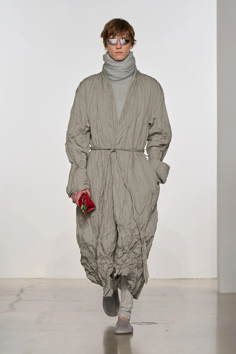 조용한 럭셔리가 부유층의 미묘한 신호였다면, ‘의도된 주름’은 오히려 평범함을 가장하려는 시도일지도 모른다. 게다가 이 룩들은 자동차 키나 장보기 가방 같은 일상적인 소품과 함께 연출되었다. 패션이 점점 현실감각을 잃어가고 있는 시대에, 이런 평범함이 새롭게 느껴진다.