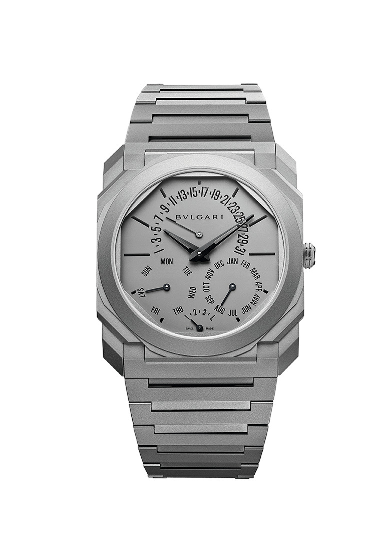 OCTO FINISSIMO PERPETUAL CALENDAR 2021 2021년 제네바 워치메이킹 그랑프리 GPHG에서 ‘에귀유 도르 Aiguille d’Or’를 수상했다. 두께 5.80밀리미터의 티타늄 케이스로 “세계에서 가장 얇은 퍼페추얼 캘린더 워치”로 기록되어 있다.