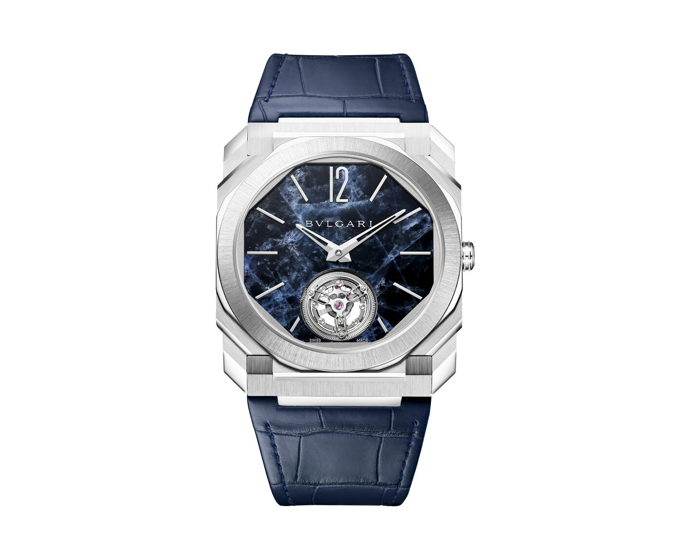 수세기 동안 대리석은 이탈리아의 건축과 문화 예술을 상징하는 소재였다. 그러나 무겁고 단단하면서도 쉽게 부서지는 탓에 극도의 정교함이 필요한 워치메이킹에선 특히 다루기 어려운 재료. 게다가 가장 얇은 부품 중 하나인 다이얼을 대리석으로 조각한다는 건 결코 쉬운 일이 아니다. 하지만 불가리는 또 한 번 한계를 넘어섰고, 울트라 씬 워치에 대리석을 접목하는 대범한 도전에 성공했다. 그렇게 올해 초 옐로 골드 케이스에 알프스 그린 마블 다이얼을 선보였고, 뒤이어 이번 제네바 워치 데이즈에서 두 번째 대리석 다이얼 워치인 옥토 피니씨모 투르비옹 마블을 소개했다. 하나같이 고유의 패턴을 지닌 딥 블루 대리석 다이얼은 이탈리아 최고 채석장에서 얻은 소재. 여기에 블루 엘리게이터 레더 스트랩을 매치해 지적이고 클래식한 디자인으로 완성했다. 직경 40밀리미터에 두께가 단 5.35밀리미터라는 경이로운 스펙. 내부에는 두께 1.95밀리미터의 핸드 와인드 BVL 268 칼리버가 장착된 옥토 피니씨모 투르비옹 마블은 30개 한정 생산된다.