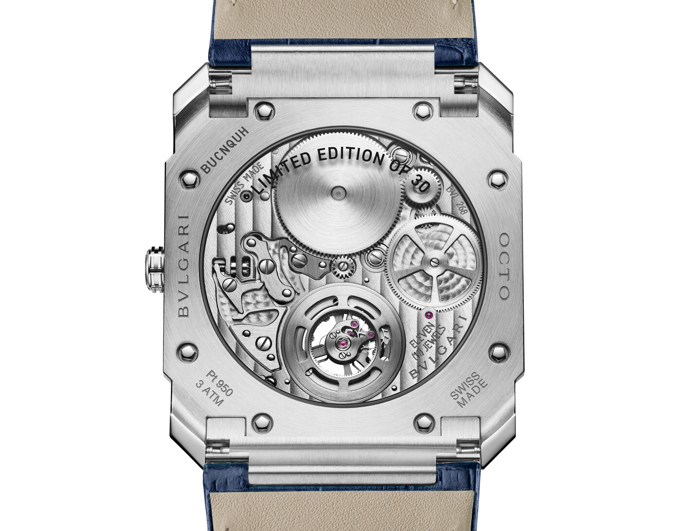 OCTO FINISSIMO AUTOMATIC 2017 2.23밀리미터 두께인 마이크로 로터 무브먼트 BVL 138을 탑재한 5.15밀리미터 케이스. 진보된 디자인과 스위스의 워치메이킹 기술인 사부아페르 Savoir- Faire의 완벽한 조화를 보여주는 모델.