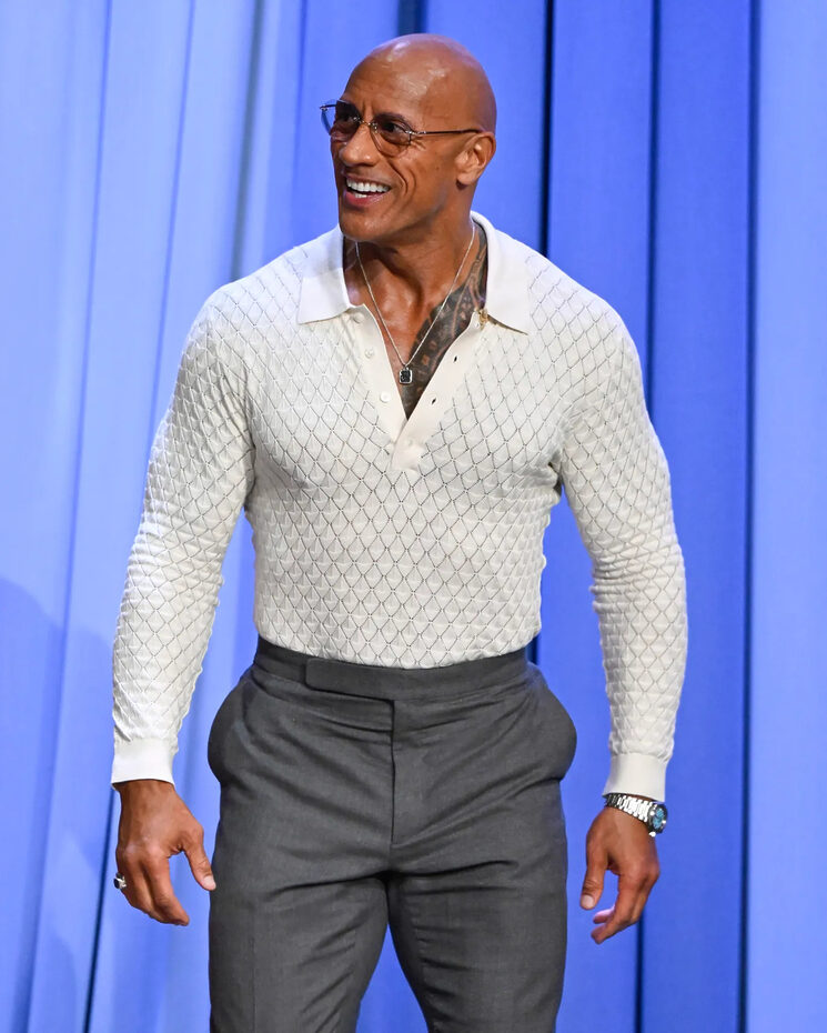 쇼에서 드웨인 존슨이 몸에 달라붙는 니트 셔츠와 함께 매치한 제품은 IWC 인제니어 오토매틱 40(ref. IW328907). 이 모델은 재설계된 인제니어 시리즈의 최신 버전으로, 40mm 스테인리스 스틸 케이스와 그리드 패턴의 블루 다이얼이 돋보인다.