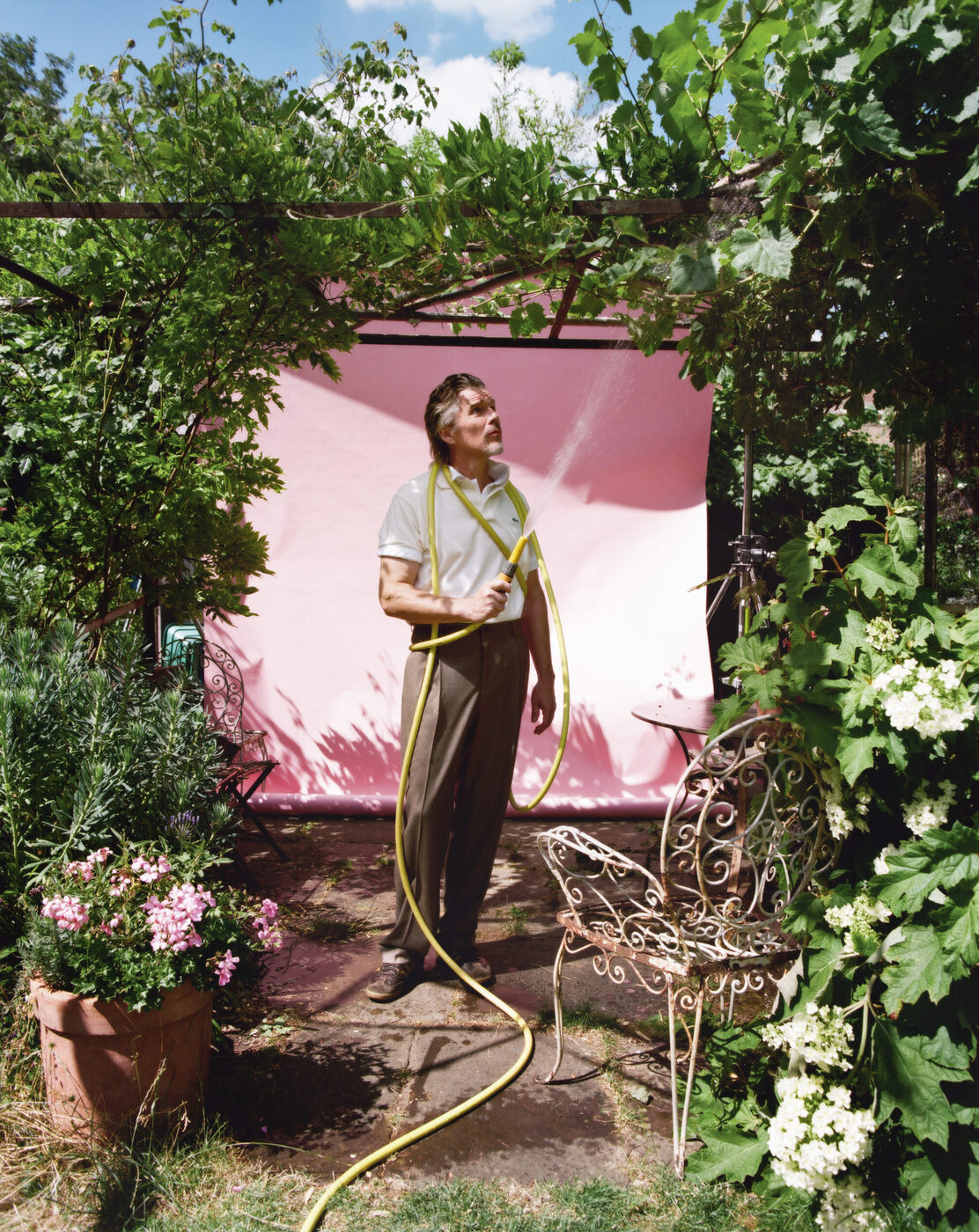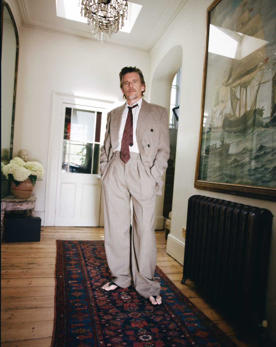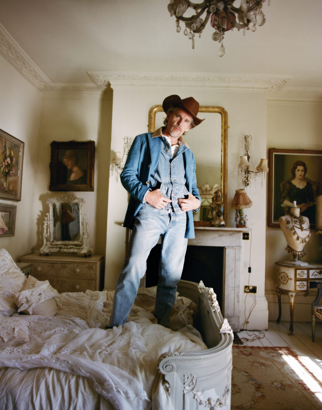 다른 라이징 스타들이 여름 블록버스터나 향수 광고로 그 순간을 성대하게 이어갔다면, 호크는 달랐다. 그는 20대와 30대를 새로운 문화적 시도가 나타나는 곳들을 탐구하며 보냈다. 소설을 쓰고, 자신이 공동 설립한 극단에서 연극을 연출했으며, 브로드웨이에서 셰익스피어 무대에 섰다. 첼시 호텔을 배경으로 한 독립영화를 연출하기도 했다. “처음부터 미친 듯이 돈을 벌어 전용기를 갖는 것이 목표인 사람들이 있죠.” 호크가 멀리 두던 시선을 돌리며 말을 잇는다. “하지만 저는 예술에 의미 있는 기여를 한 사람들에게 훨씬 더 관심이 있었어요.”