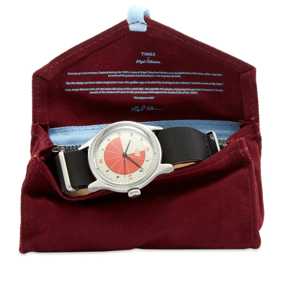 실용 목적 중심의 시계 얘기를 하자면, 요즘 머릿속에서 떠나지 않는 모델이 있다. 2019년에 나이젤 카본과 타이맥스가 협업한 시계다. 이는축구 심판을 위해 고안된 모델이다. 아이디어는 단순하다. 다이얼의 3/4이 밝은 오렌지색으로 칠해져 있어 45분 전·후반을 한눈에 볼 수 있게 했다.