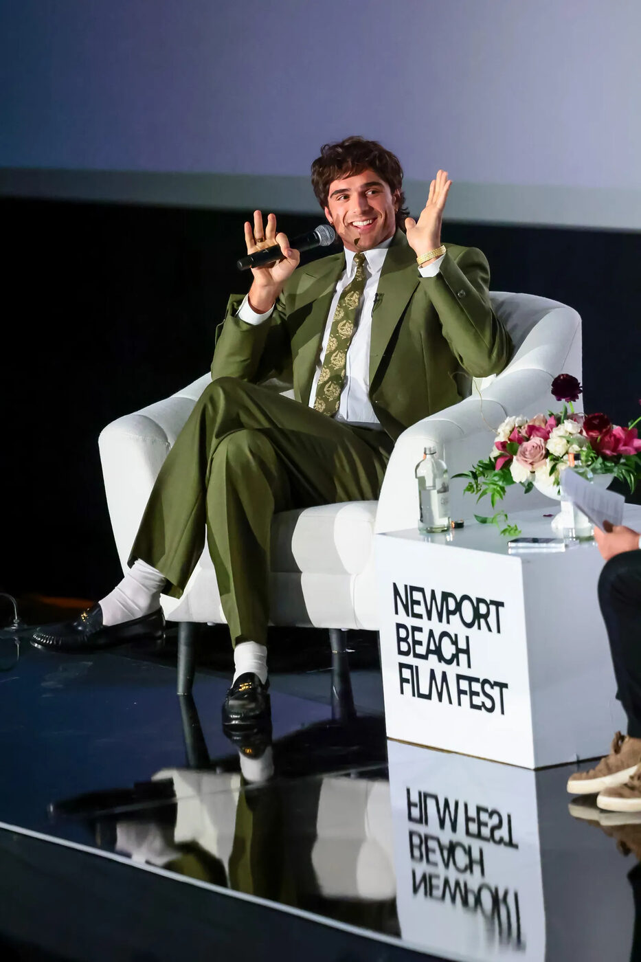 지난 주 뉴포트 비치 영화제에서 ‘프랑켄슈타인’ 같은 초록색 셀린 수트를 입은 제이콥 엘로디