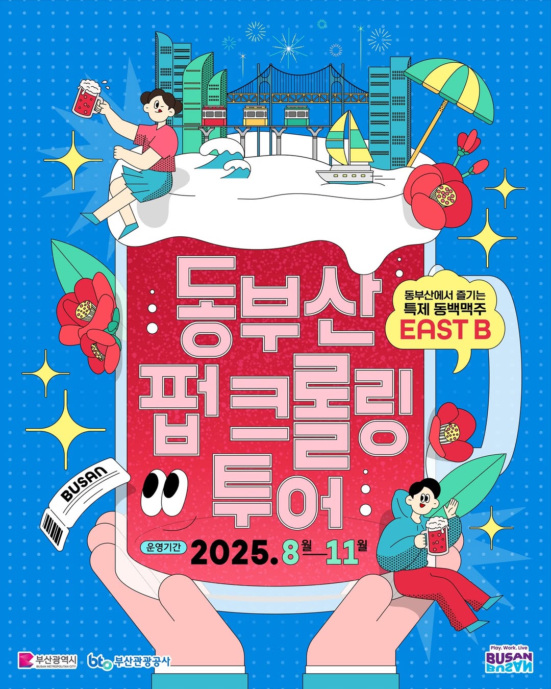 예술 작품이 낮의 부산을 수놓았다면, 밤에는 <동부산 펍 크롤링 투어>가 부산의 낭만과 활력을 책임진다. 해운대와 광안리를 중심으로 동부산 지역에 숨겨진 개성 넘치는 펍과 바를 순회하는 이 투어는 부산의 수제 맥주와 개성 넘치는 칵테일, 그리고 바다 도시 특유의 힙한 밤 문화를 체험할 수 있다. 이번 투어 프로그램을 위해 부산을 대표하는 3개의 브루어리에서 부산의 시화(市花)인 동백꽃에서 영감을 받아 실제 동백꽃잎을 우려낸 수제 맥주 ‘이스트B: 동백’을 공동 개발했다. 투어 패스권 구매 시, 이스트 B: 동백 무료 이용권과 전 메뉴 3,000원 할인권이 제공된다. 해당 쿠폰은 동부산 지역의 대표 수제 맥주 펍 8곳에서 사용 가능하다. 미식과 낭만, 사람과 사람이 연결되는 동부산 펍 크롤링 투어는 가을밤을 더욱 뜨겁고 풍성하게 만들어 줄 것. 투어 프로그램에 대한 자세한 내용과 관련 공지는 인스타그램 행사 계정에서 확인할 수 있다.