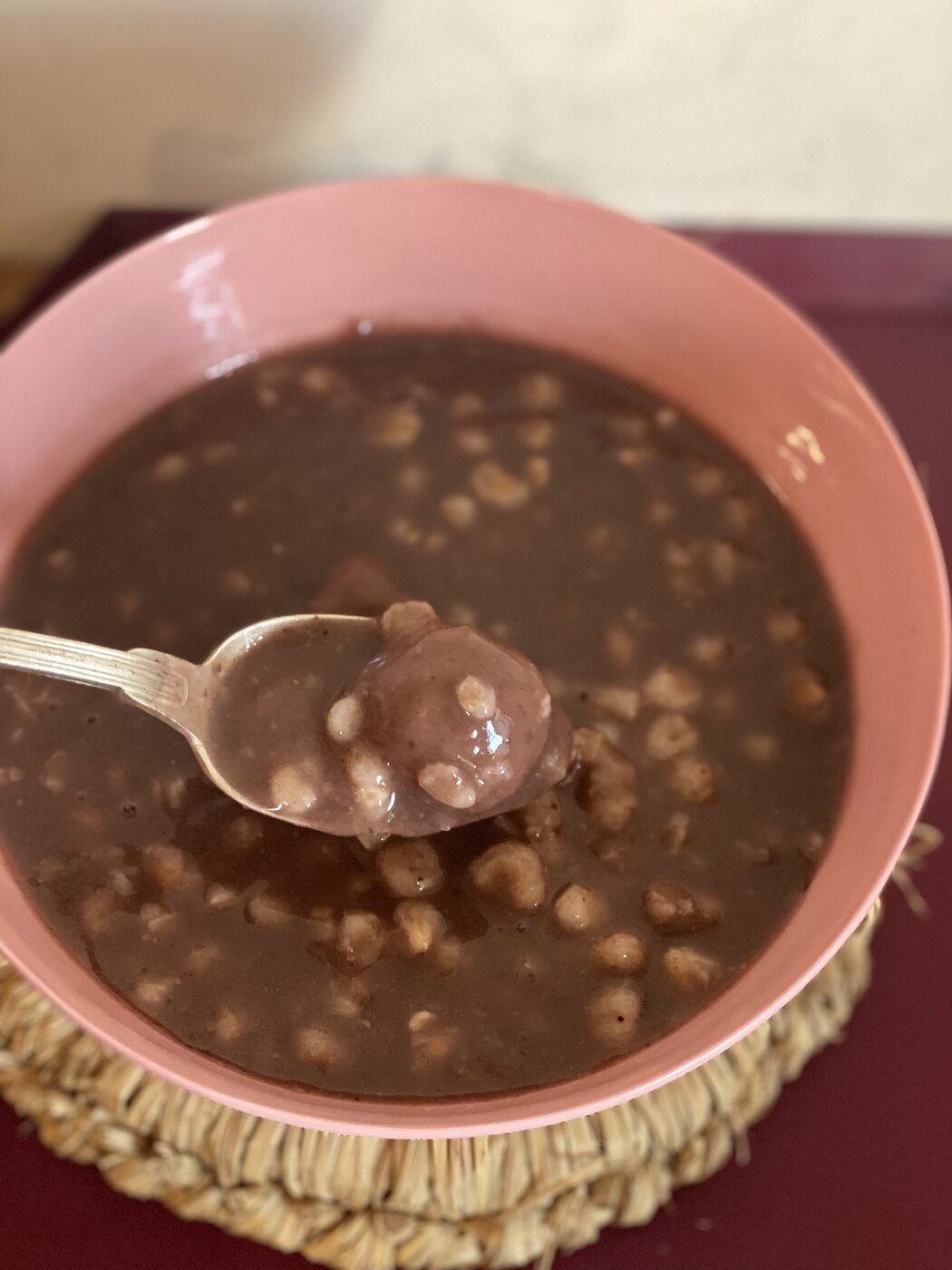 ⑦ 6의 수수새알심을 5의 팥죽에 넣어 데운 후 소금으로 간합니다. 단맛이 좋다면 설탕을 가미합니다.
