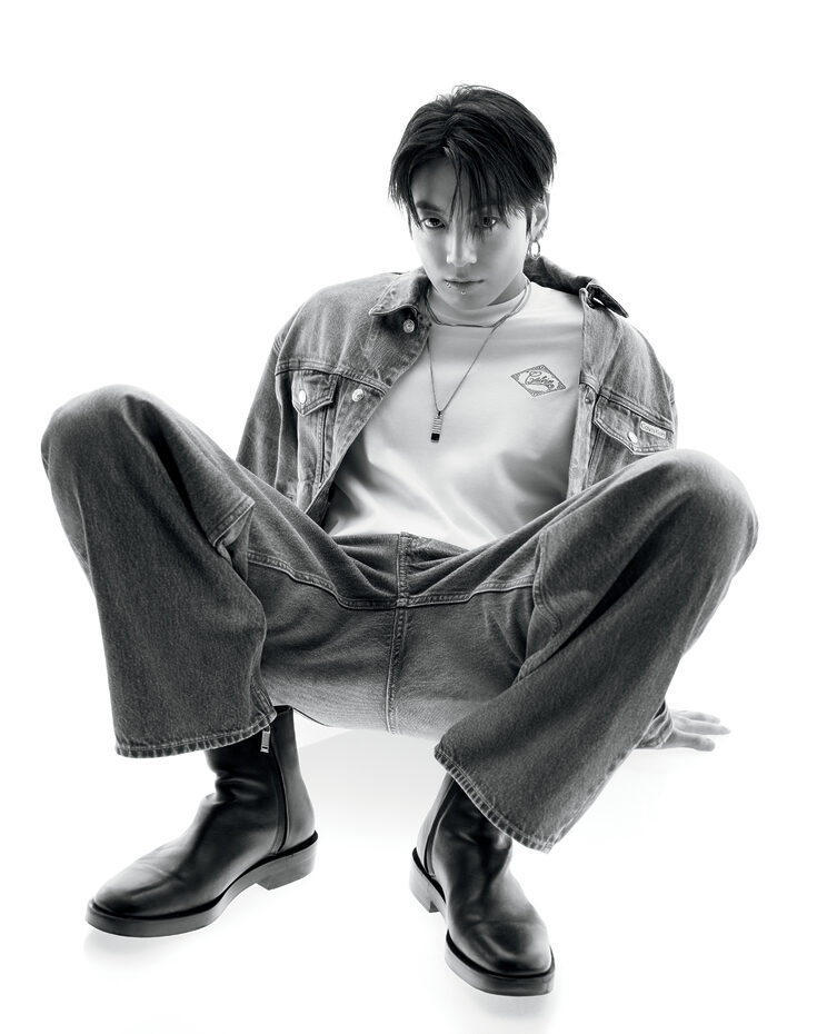 “제 팬들이 이번 복귀를 손꼽아 기다려왔다는 걸 알고 있어요.” 2023년에 처음으로 캘빈 클라인의 데님과 언더웨어 모델이 된 BTS 정국이 기쁜 마음으로 돌아왔다.
