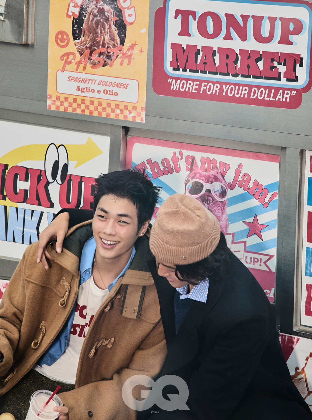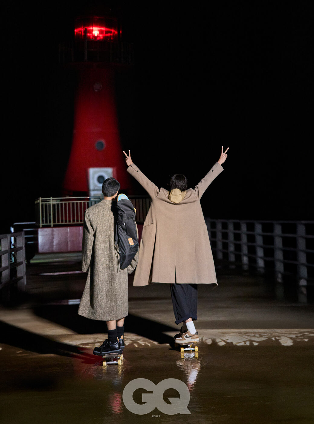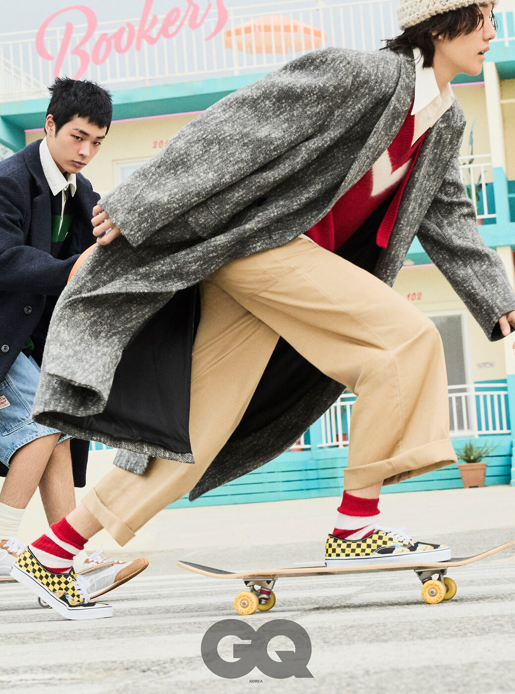 부클레 소재 울 시티 코트 5백98만원, 폴로셔츠 2백22만원, 모두 루이 비통. 데님 버뮤다 팬츠 가격 미정, 리바이스. 플로우 러너 스니커즈 1백10만원, 로에베. 더블 브레스트 헤링본 코트 가격 미정, 렉토. 레드 울 스웨터 2백70만원, 화이트 셔츠 가격 미정, 모두 발렌티노. 베이지 코튼 팬츠 가격 미정, 마르니. 브이 로고 체커보드 및 르 샤 드 라 메종 프린트 로톱 스니커즈 62만원, 발렌티노 가라바니. 아키로 울 블렌드 비니 36만원, 헬렌카민스키.
