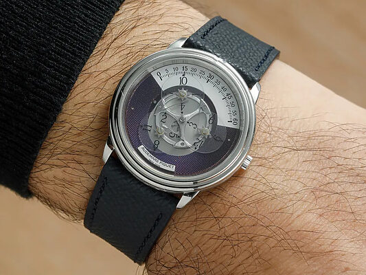 보통 오래된 오데마 피게를 구입한다면 빈티지 로얄오크를 고르는 게 일반적이지만, 엘로디는 훨씬 멋진 선택을 했다. 이날 그의 손목에 빛나던 것은 황금 소재의 오토매틱 데이-데이트-문페이즈 시계로, 대나무 같은 베젤과 일치하는 브레이슬릿이 특징이다. 슬림하고 우아한 분위기를 풍기는 이 시계는 제럴드 젠타의 매력과 오데마 피게 특유의 복잡한 시계 제작 접근 방식을 결합해, 오늘날 컬렉터들이 열광하는 바로 그 종류의 시계다. 이 시계들은 종종 5만 달러대 후반, 7~8천만 원에 거래된다.