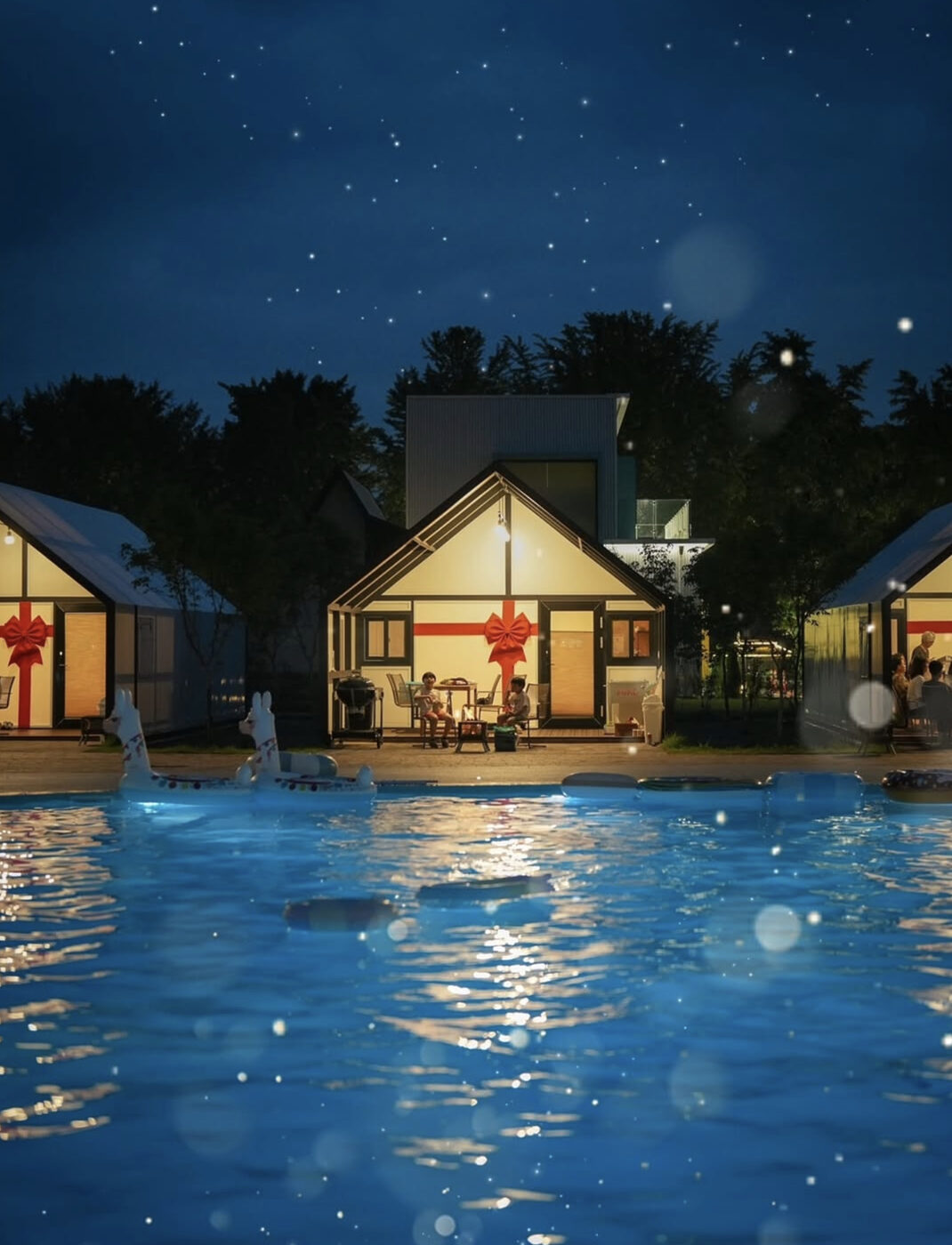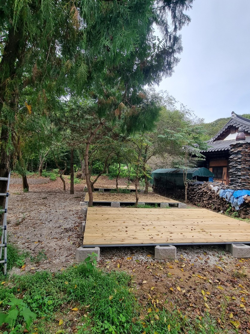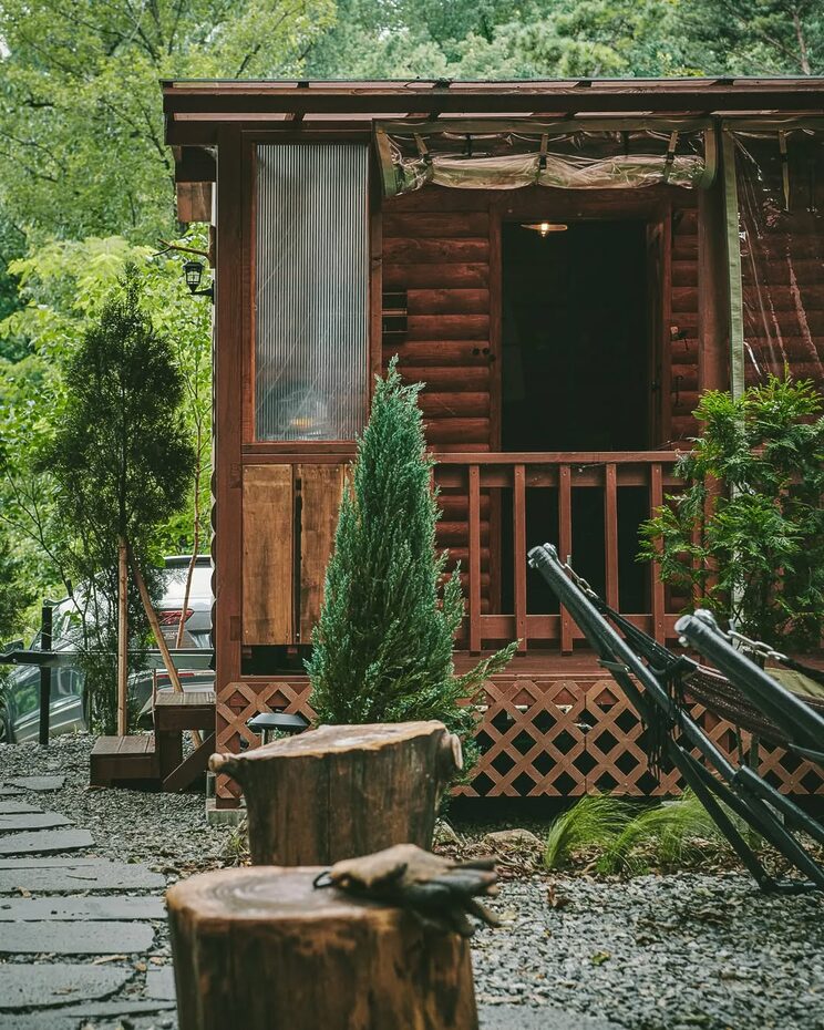 캠핑장의 끝없는 발전에 힘입어 노천탕을 갖춘 캠핑장까지 생겼다. 세 개의 원형 수영장을 둘러싸고 글램핑장과 바비큐존이 여유롭게 늘어서 있다. 아버지가 60년 동안 운영하던 양계장 부지에 만든 글램핑장으로, 캠핑장 주인이 가장 익숙한 공간에 애정이 담아 만들었다. 오래된 은행나무들이 캠핑장 입구에 줄지어 서 있어 가을이면 샛노란 산책길을 걸을 수 있다.