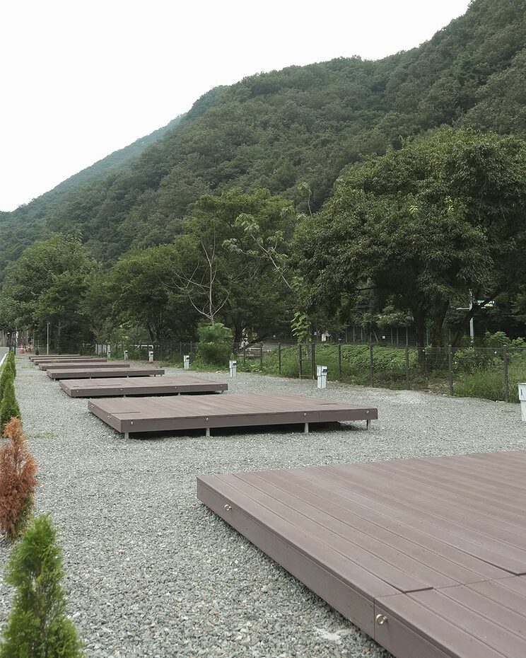 가평에 위치한 뷰 좋고 시설 좋은, 아지트 삼고 싶은 캠핑장. 춘천 고속도로를 타고 설악IC에서 10분이면 도착한다. 솔로 캠핑부터 각종 사이즈 데크 사이트, 글램핑 시설까지 100개가 넘는 사이트를 보유하고 있다. 근처 1.6km에 이르는 산책로와 유명산 자연 휴양림과 스위스 마을, 쁘띠프랑스 같은 관광지가 있고 바로 앞에 24시간 편의점이 있다.